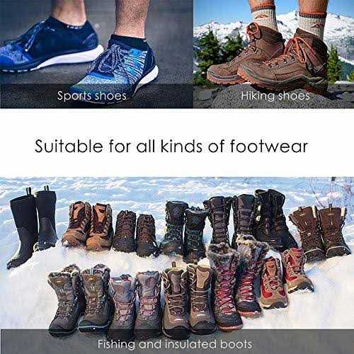 Widely used for various activities, on ice, snow, icy driveway, mud, wet grass, and other poor conditions. Perfect and ideal for everyday use: The city to use or winter outdoor work and a variety of activities like hiking, fishing, walking, climbing, hunting, trail running, etc. FEATURES: Stronger And Safer Spikes: Featured 19 high-quality stainless steel spikes per foot and firm chain system, providing excellent traction on a variety of terrain or other worst conditions, keep you safe and injury-free. Durable And Stretchy Material: Made from thermoplastic elastomer (TPE), 5mm thicker than ordinary rubber, till strong performance under -45°C. Easy to put on&off with adjustable strap. Won’t tear or snap, ensure long-lasting comfort and durability. Widely Used And Unisex: Suitable for males and females of any age including teenagers, adults, elders. Used on angled terrain, ice roads, icy driveway, mud and wet grass, dangerous sections of trail, etc. Great for trail running, hiking, and ice fishing. Flexible And Pocket-Size: Suitable for various kinds of sports, hiking shoes, boots, mountaineering boots. The strap ensures more comfort and safety. Portable and lightweight, can be put into the carry bag included and will not take up much space. Note: The “L” mark on crampons means size “Large”, not meaning “Left”. There is no Left or Right difference for crampons products. PRODUCT SPECIFICATIONS: Brand: Cimkiz Color: Black Function: Anti Slip Material: Stainless Steel and TPE