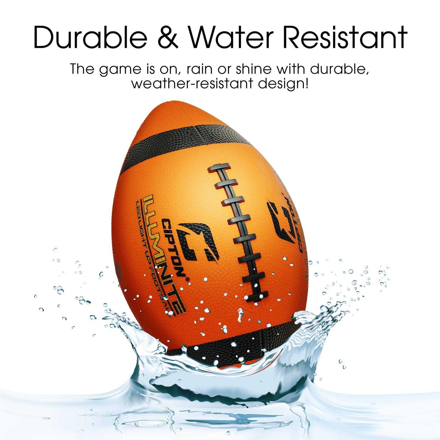 The Light Up “Day and Night” Official Size Football by Cipton will let you score that touchdown no matter what time of day it is. The ball has a premium rubber surface with a delicate touch. Behind the premium rubber is an inner rubber tank for stable pressure and air retention. The rubber is wrapped with layers of yarn keeping the integrity and durability making it have a real feel like a professional football. The lights are impact activated and automatically turn off after 5 minutes of no movement, so you don’t have to worry about running out of batteries!