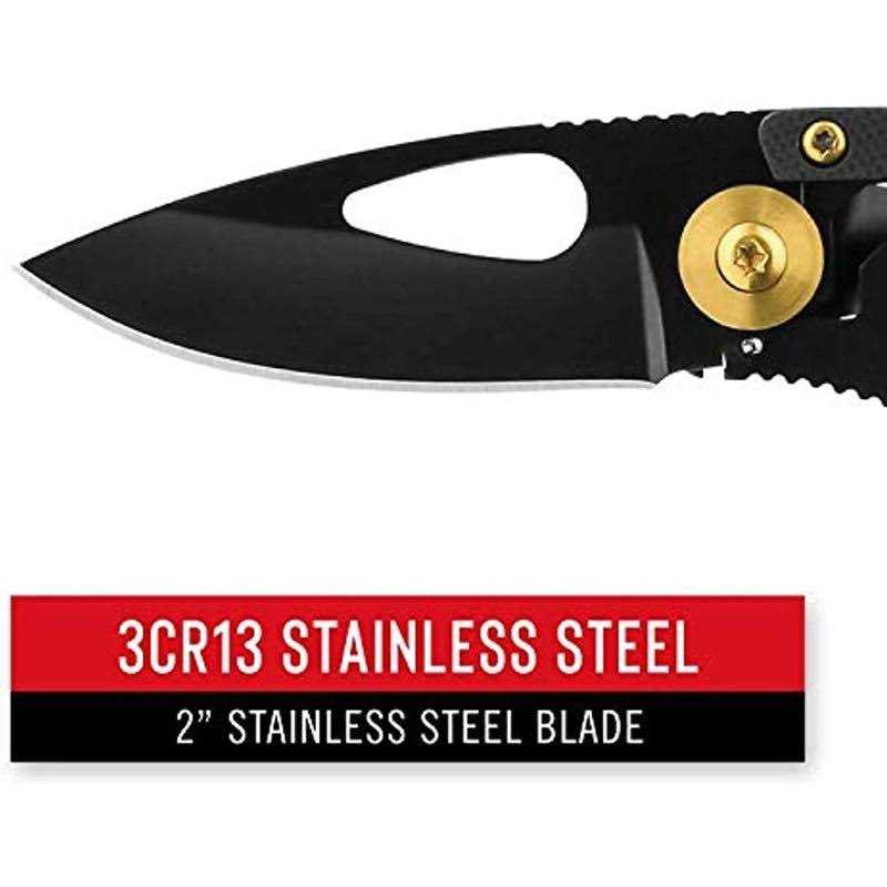 2″ Folding Drop Point Blade, Closed Length: 3.4″, 3CR13 Stainless Steel Straight Edge, Thumb Hole for One-Handed Opening, Frame Lock, Pocket/Money Clip, Bottle Opener, Lanyard/Key Ring Hole, Weighs Just 1.4 Ounces. Whether camping or commuting the COAST FX200 Frame Lock Knife is easy to carry. It features a straight edge 2 3CR13 stainless steel blade a thumb hole for one-handed opening and a frame lock for safety along with a bottle opener and a pocket clip that doubles as a money clip. The hole at the base of the handle accommodates a lanyard or key ring. At just 3.4 and 1.4 ounces you’ll barely notice the FX200 in your pocket but you’ll reach for it time and time again.