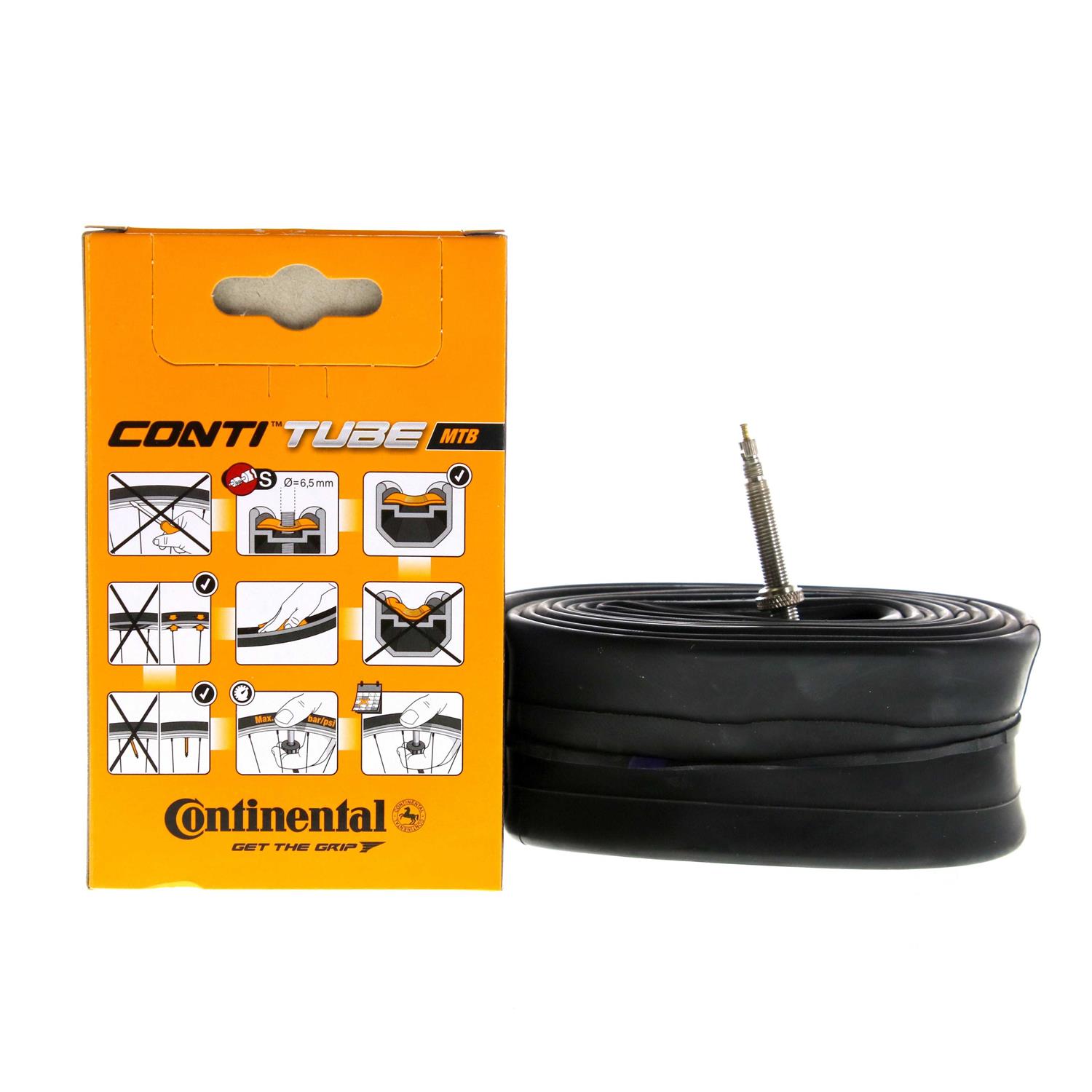 Through different types of hoses can affect the way with little effort the handling characteristics of your bike: The available in all dimensions of standard hose provides the best compromise to meet the needs of everyday life. Weight and rolling resistance, however, can be noticeably optimized with Light and Super Sonic hoses. However, the reduced wall thickness up to 0,45mm increase the risk of punctures. In addition, lightweight hoses must be pumped in common. The new ContiTube hose program makes it even easier to find the optimum hose for your needs. The very clear and user-friendly hose system was perfectly adapted in size, design, valve type and length to the respective tire sizes and applications. An all-inclusive package, however, is the Hermetic Pluse hose. Thanks to improved formulation now more compact and lighter, the butyl content increased and the greater wall thickness make it extra puncture resistant. Because he plus extra long air continues he is the favorite of many bike rentals. Particularly strong and bluky are also our freeride and downhill tubing. Effectively protect with extra thick wall thickness before breakdowns.