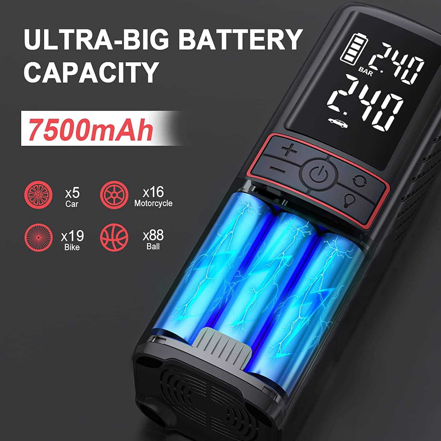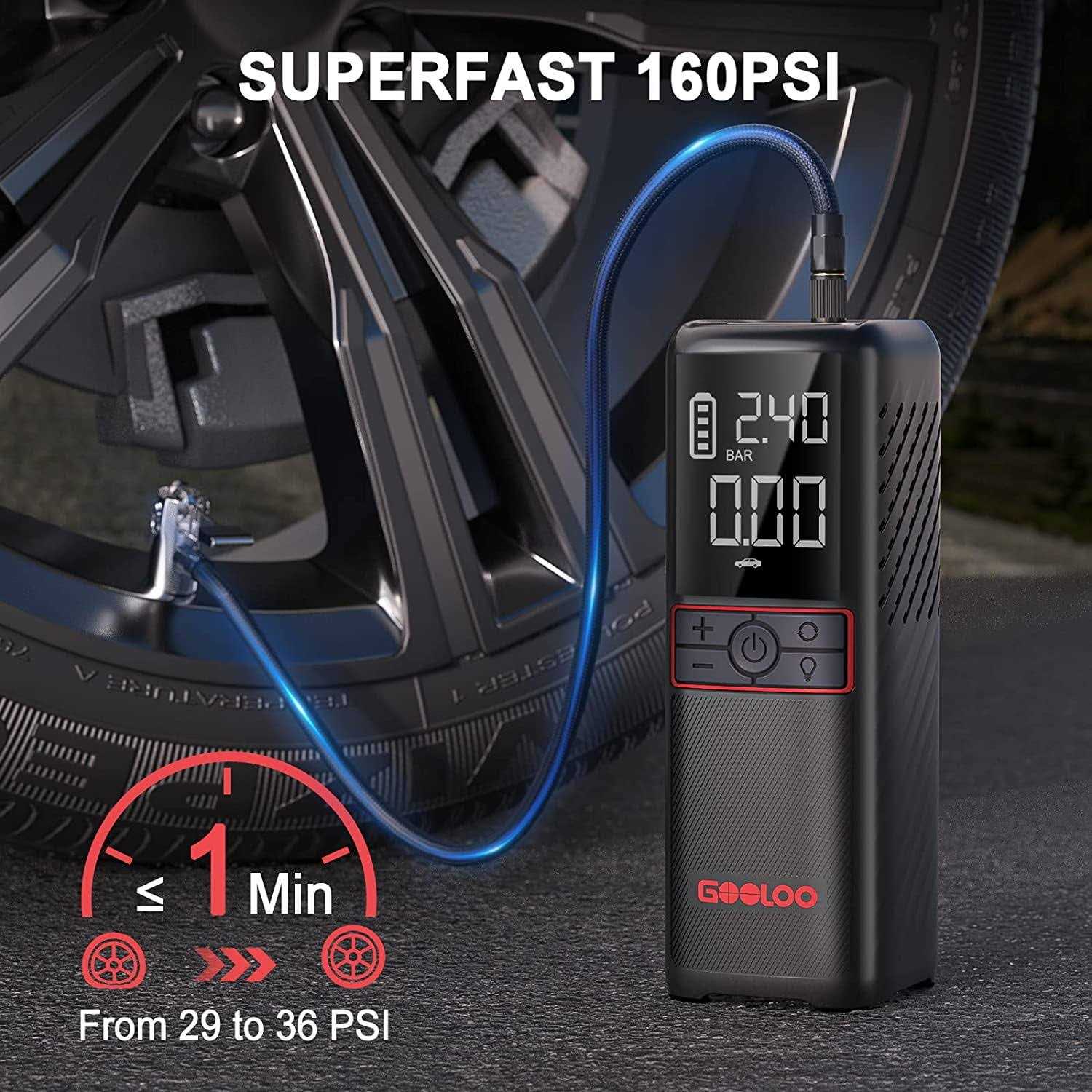 Gooloo Tire Inflator Cordless Air Compressor,7500mAh 12V 160psi Portable Tire Air Pump Auto-Shutoff with Digital Pressure,Rechagable for Car Tires,
