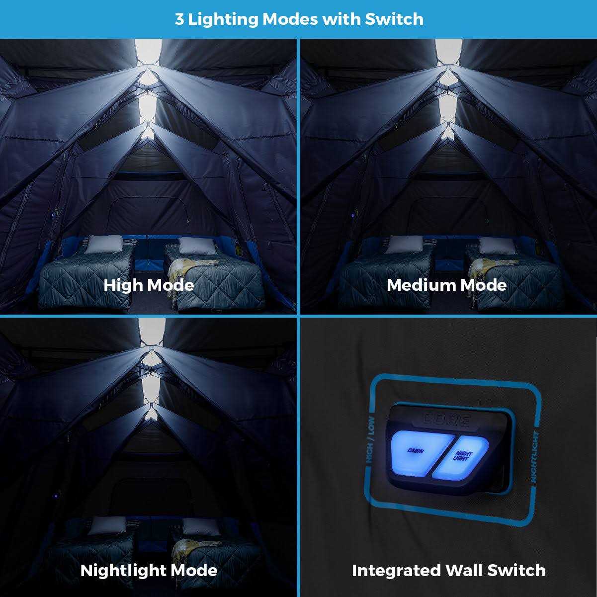 - Light up your campsite in under a minute with CORE’s Lighted Instant Cabin Tent.