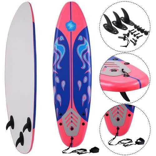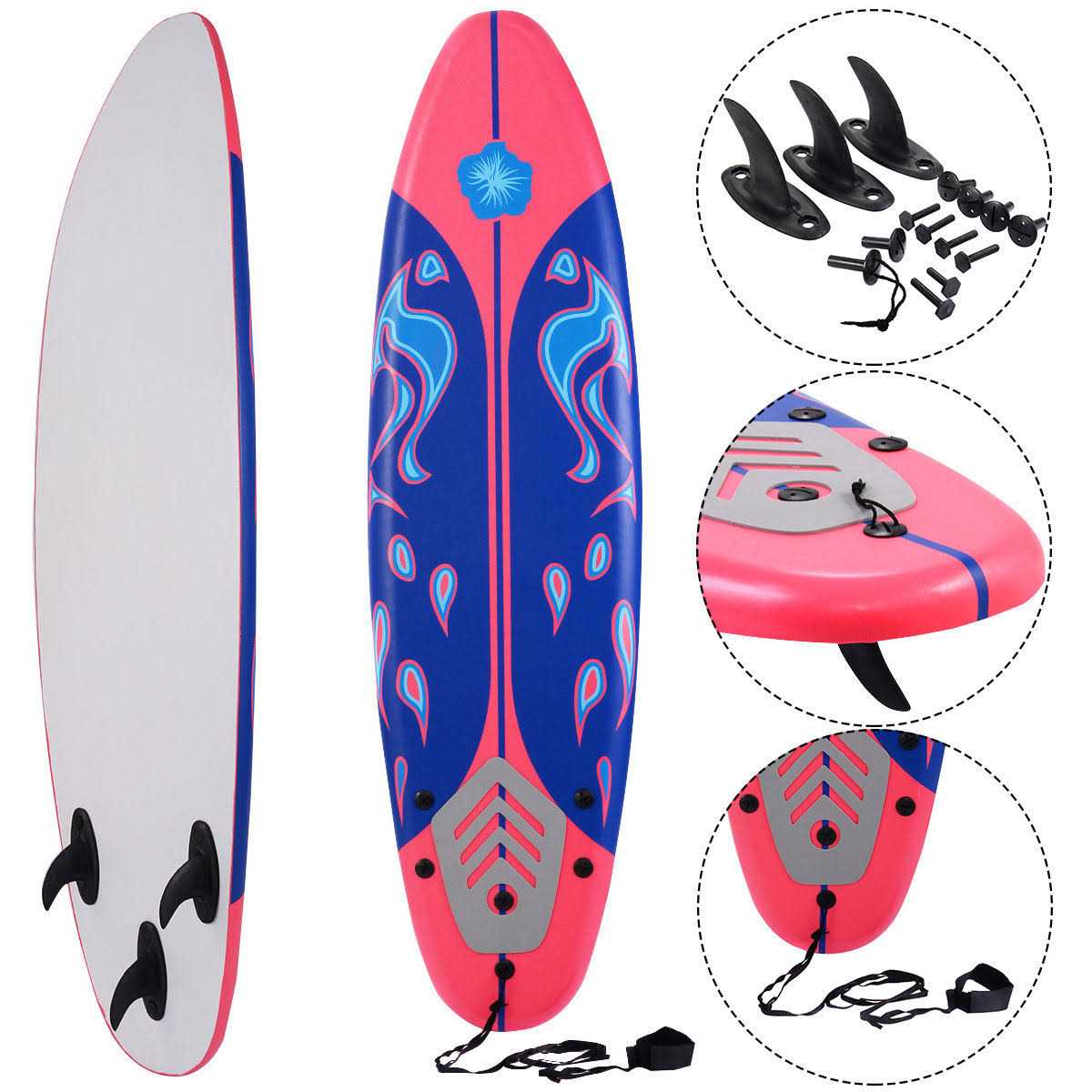 Costway 6′ Surfboard Foamie Body Surfing Board W/3 Fins & Leash