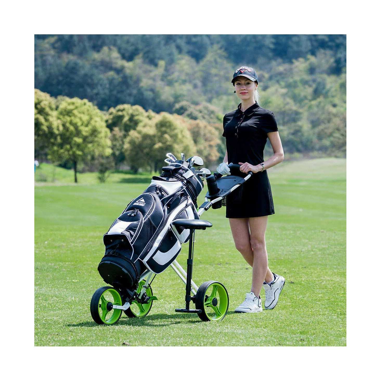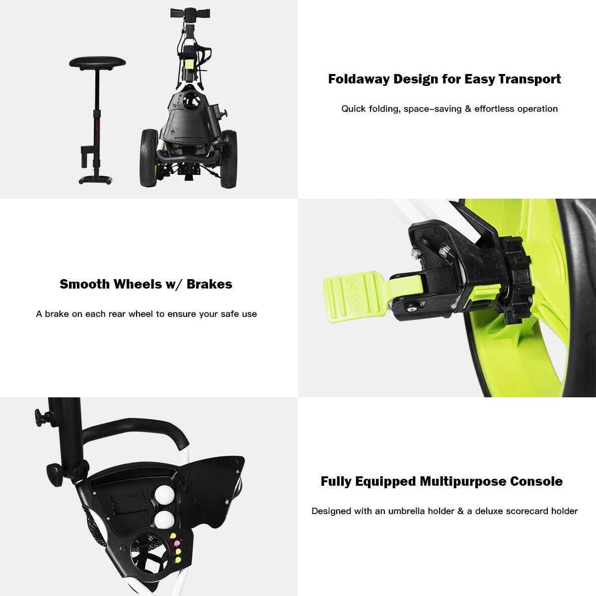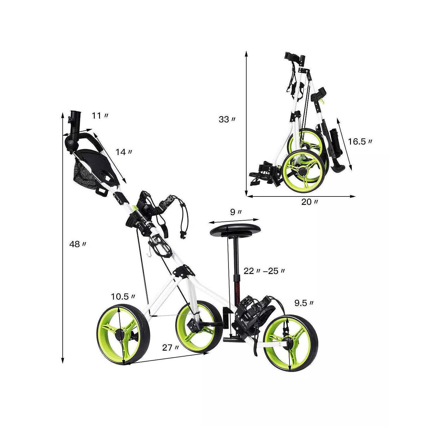 Costway Foldable 3 Wheel Push Pull Golf Club Cart Trolley w/Seat Scoreboard Bag Swivel