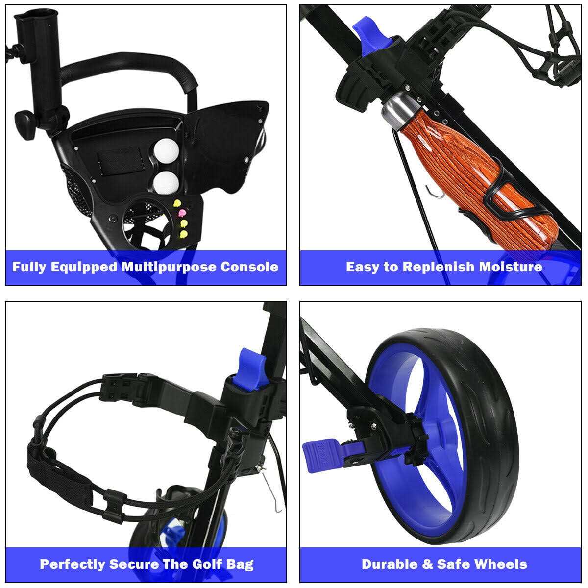 Costway Foldable 3 Wheel Push Pull Golf Club Cart Trolley w/Seat Scoreboard Bag Red/Blue