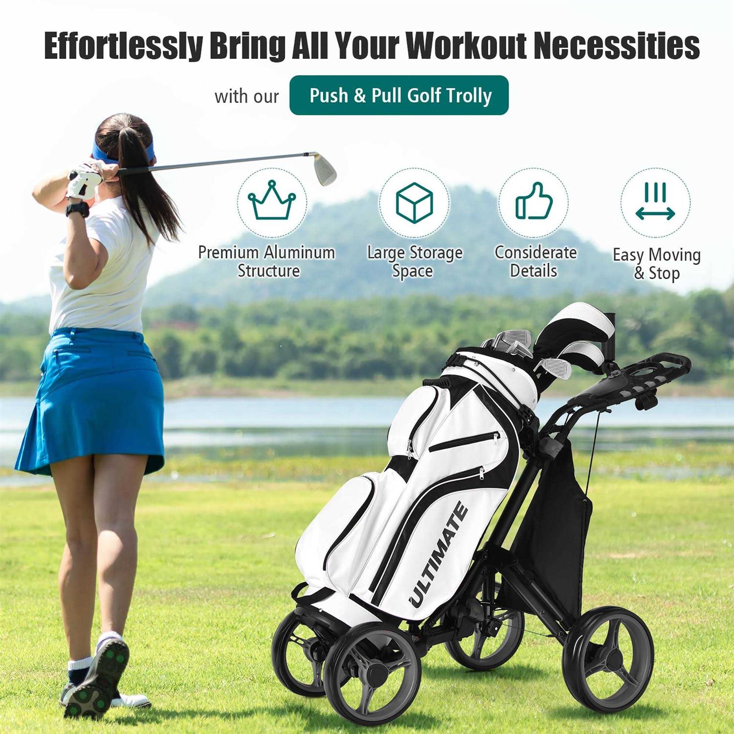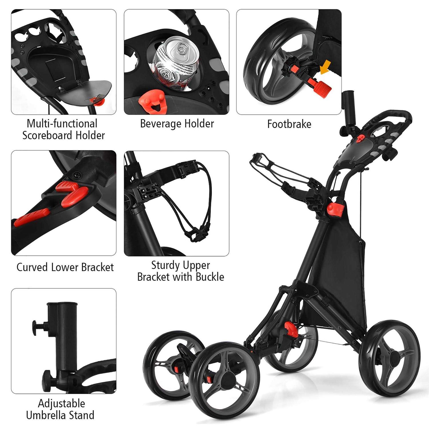 Costway Folding 4 Wheels Golf Push Cart W Scoreboard Adjustable Handle