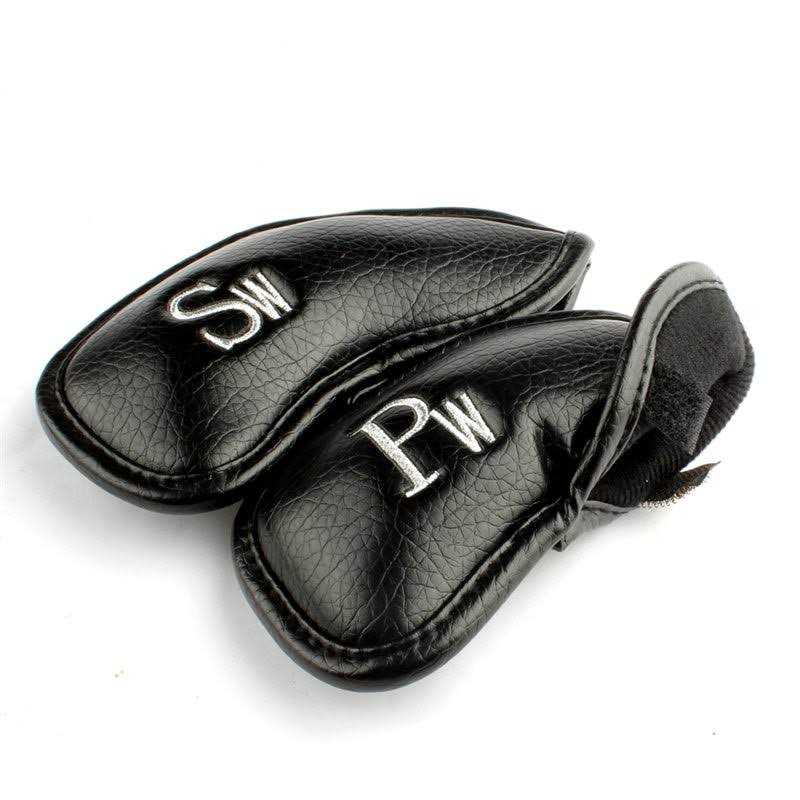 Leather Golf Iron Head Covers Set Black / Right Hand