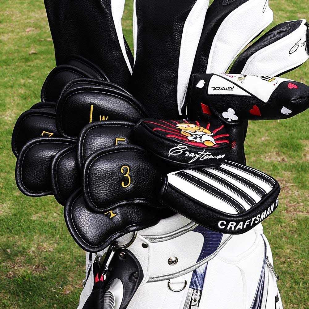 Craftsman Golf 12pcs or 1pc Thick Synthetic Leather Golf Iron Head Covers Set Headcover Fit All Brands Callaway Ping TaylorMade Cobra etc. Also