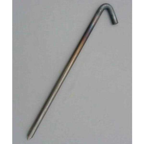 Features: A heavy duty steel hook stake. 18″ long with a 5/8″ diameter shank.Great for staking down bouncers and inflatables.Made in USA!