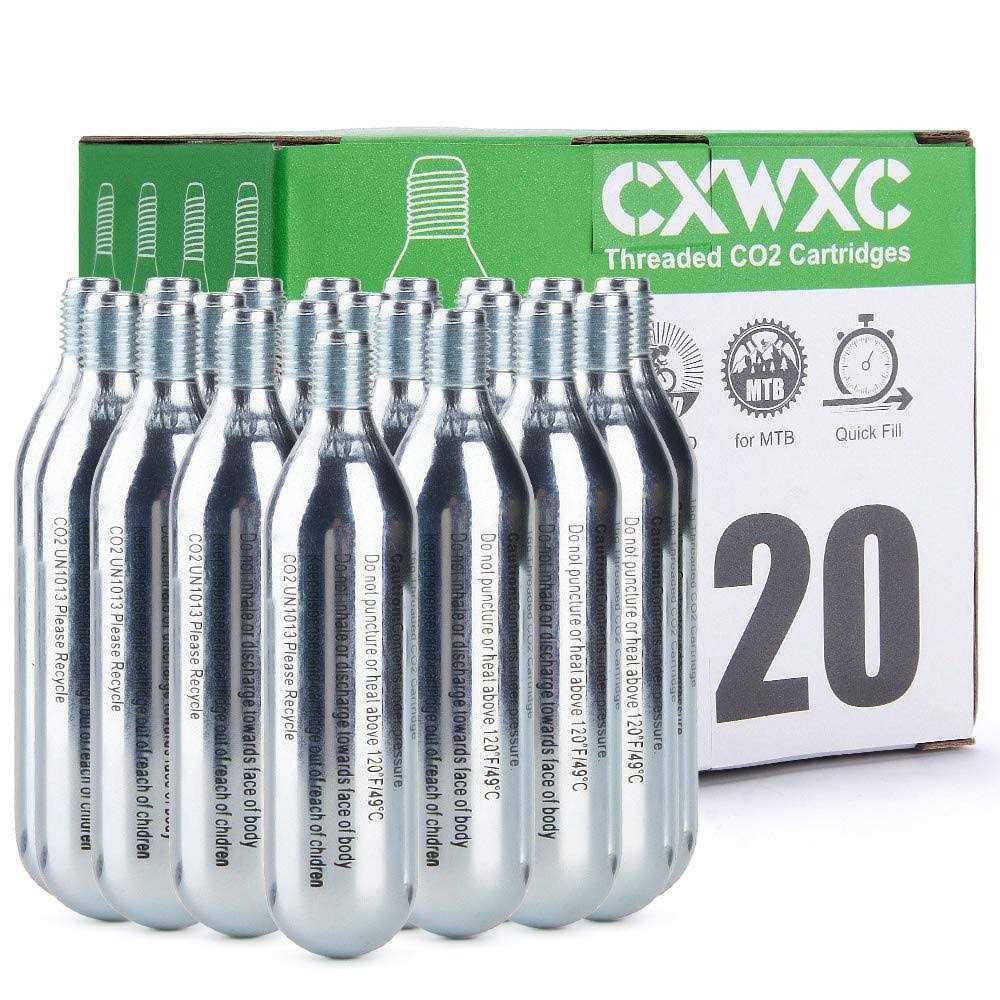 CXWXC 16g / 25g Threaded CO2 Cartridges or CO2 Inflator for Bike Tires – Cartridge for CO2 Inflator with Threaded Connection, CO2 Pump for Road and