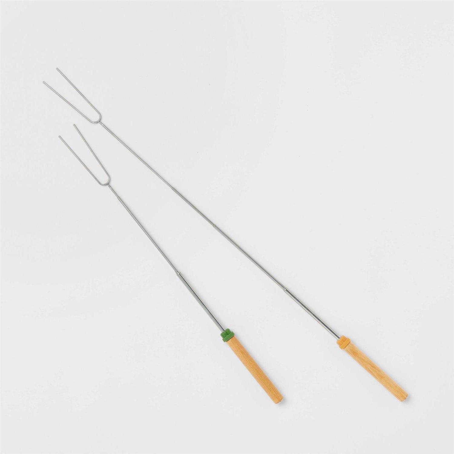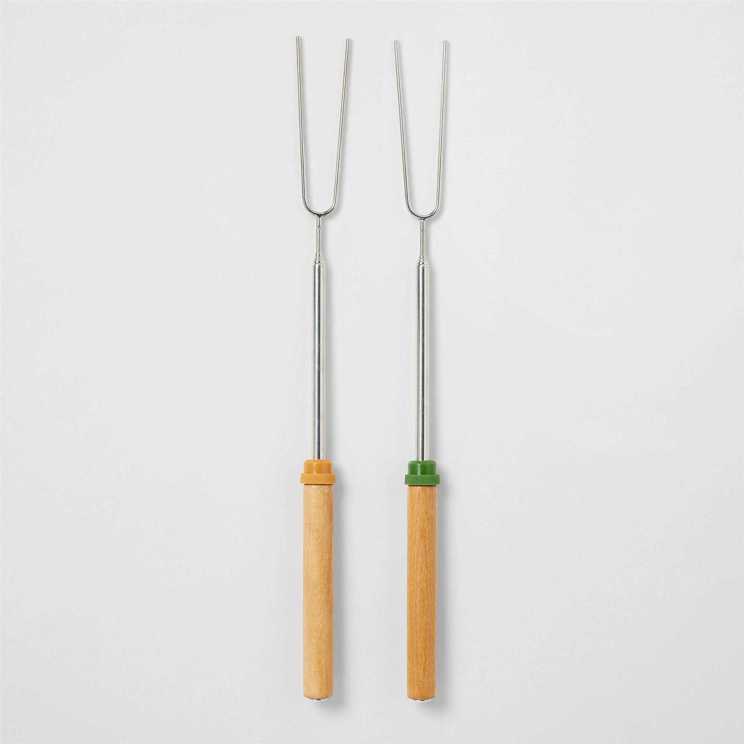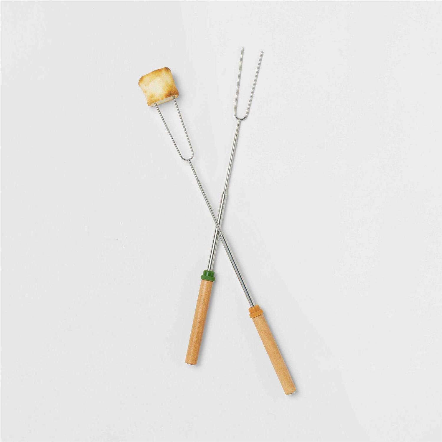 The 2-Count Extendable Camp Forks from Embark is a must-have hassle-free tool for the campsite or the backyard bonfire. The pack includes two camp forks with stainless steel construction and wooden handles for comfort. They feature a textured plastic ring on the handle for rotating the fork tip, and each fork has an adjustable length so you can keep a good distance from the fire. Whether it’s hot dogs or s’mores, you’ll love the convenience and versatility of these extendable forks. Embark : Find wonder as you wander.