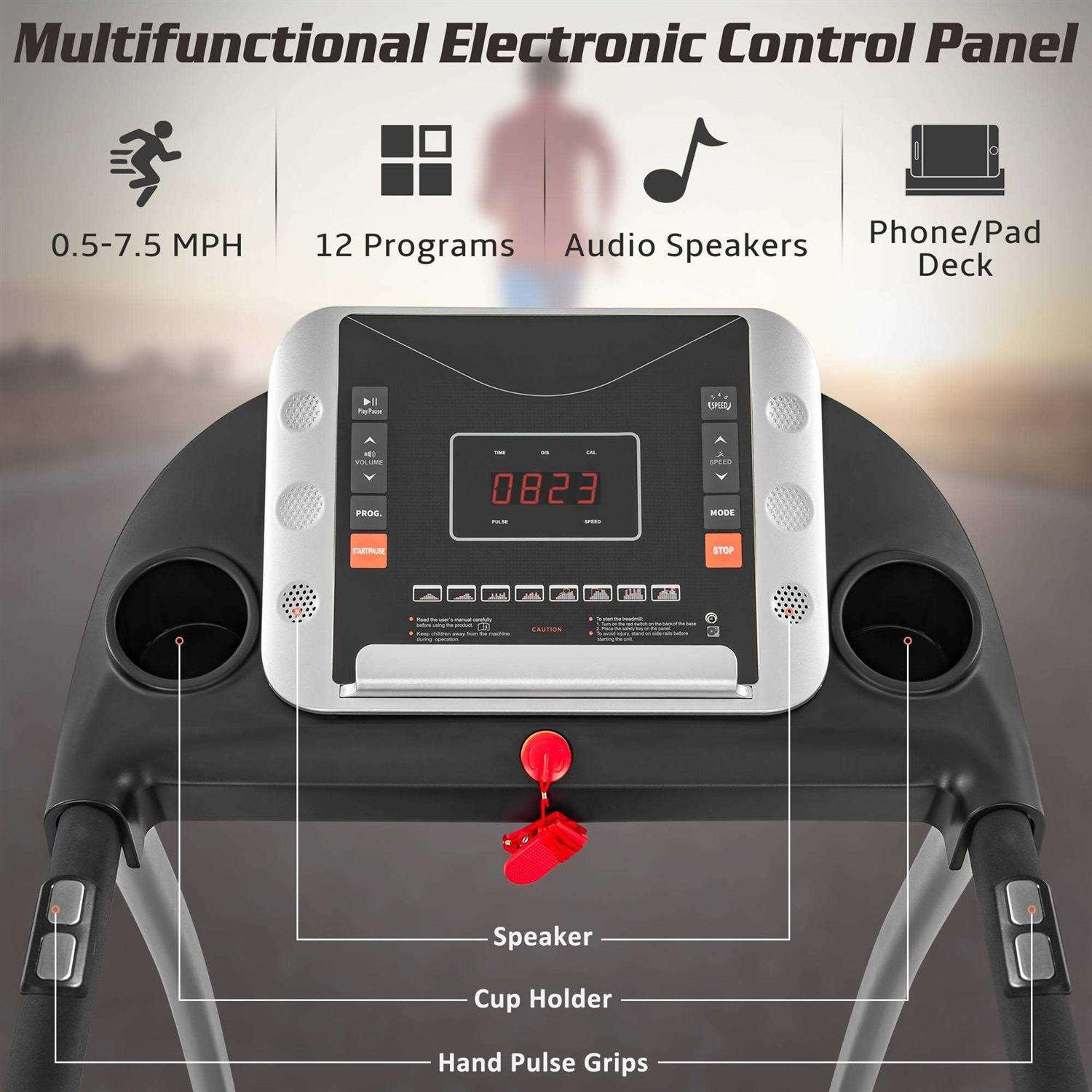 Euroco 500lbs 2.5HP Folding Treadmill with 7.5MPH Speed,51″ Longer Portable Running Walking Compact Exercise Machine with 12 Preset Program, 3-Level