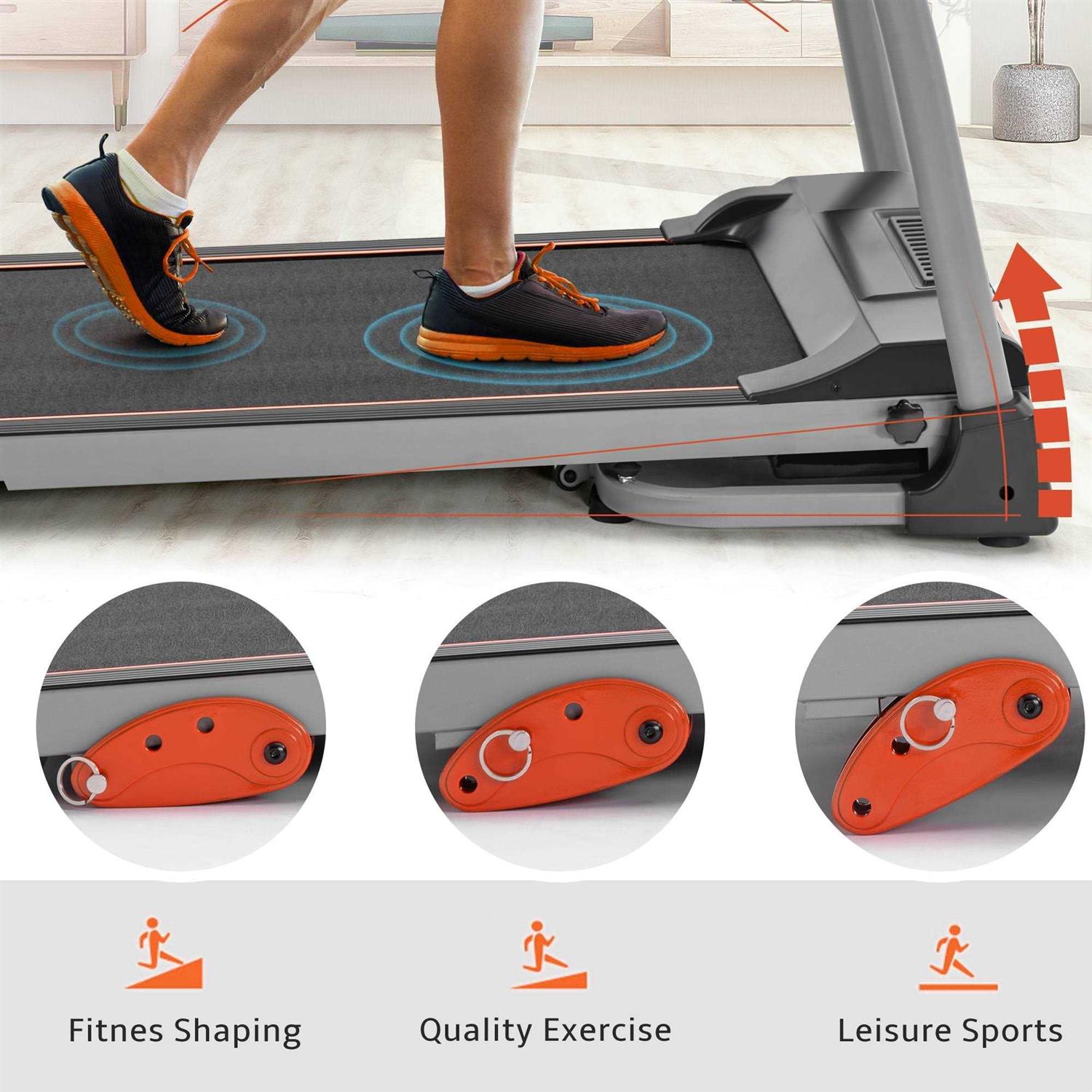 Euroco are committed to upgrading and updating treadmill products, using high-quality materials that are durable and more reliable, and will makes exercise easy and fun! This compact treadmill brings outdoor activities into your house, it’s a great choice for exercising indoors and providing a reasonable way to reach or maintain your workout goals. This treadmill has a compact design and a small footprint. Its easy-to-store folding mechanism design is very suitable for small apartments or home gyms, allowing users to choose to fold it up quickly, so as not to save valuable space in your home when needed. 【Stable and Durable】 This stable and durable treadmill provides everything you need for your daily exercise. Holds 240 pounds. The sturdy structure is equipped with a 2.5HP motor to ensure satisfactory training performance. The running board is 3-level manually adjustable to meet your personal experience. You can shut down this running machine immediately with the safety key on the control panel to avoid accidental injury. 【 LED Display 】 The standard LED display provides intuitive feedback of time, distance, speed, calories, and heart rate, so you can monitor your exercise status. Both armrests have integrated hand pulse sensors to provide synchronous monitoring of critical heart rate data. 【 Quiet 】 The excellent shock absorption effect of this treadmill comes from a multi-layer synthetic running belt and a reasonably structured running board, which keeps you away from common running sports damage and protects your knees, hips, ankles, and feet. The quiet belt drive system reduces noise interference while providing performance. 【 Easy to Store 】 Two bottle cages on the panel make water replenishment within easy reach and are equipped with a device stand for your smart device and built-in speakers to help relax while running. Easy to store and set up. Assembly size: 51″ x 24.5″ x 44.5″. Folded size: 26″ x 24.5″ x 47″.
