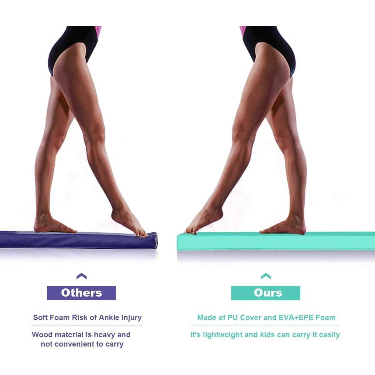LONG PRO QUALITY FLOOR BEAM: PU Leather Extra-long folding balance beam with 4-inch top that is the same as competition beams! 6 inch base firmly holds the beam so it wont topple over and ensures safety for the gymnast. THICK EXERCISE PAD THAT WONT FLATTEN OUT: Our padded beam is covered in PU material with a nonslip rubber bottom for a soft sturdy practice surface that won’t flatten over time. MORE LIGHTER & MORE DURABLE: Our folding beam weighs just at 5Lbs and can be easily carried and stored away in any closet and home. WIDE APPLICATION: 10 FT long with a 4 in balancing surface our junior gymnastics pad is a high quality low beam for girls looking to practice moves such as handspring, cartwheel, handstand, leap, jumps, walkovers, and kicks.Complete your gymnastics equipment set for home with the FBSPORT Gymnastics Bar to complete the set and use with a mat for added safety. This is a great gymnastics equipment for home.