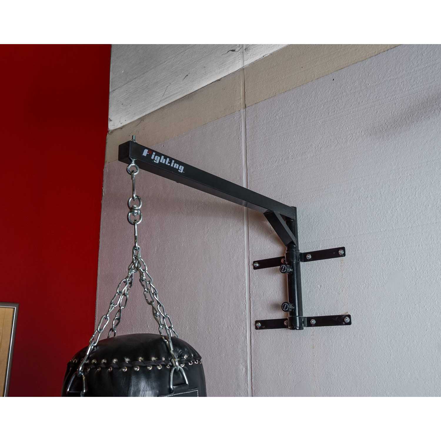 Fighting Sports unleashes the most versatile and option-filled wall mount heavy bag hanger. The totally advanced and improved Slip-N-Move Wallmount Hanger arm actually retracts and swings in to the wall – left or right – to move the heavy bag out of the way when not in use. Simple spring-loaded pop-pins and crank knobs adjustment for fast, easy modification and maneuverability. Industrial boxed steel hanging arm protrudes out a full 3-feet (36″) for optimal 360-degree movement around heavy bag while training. Includes a professional-grade eye-bolt with swivel attachment to allow bolt to rotate to alleviate tension and stress. Heavy-duty professional gauge steel mounts conveniently into masonry or wood stud walls. Holds heavy bags up to 200 lbs. Requires Wall Mounting Attachment Hardware (below). Assembled Size: 20″ W x 22” H x 36″ D Weight: Holds Heavy Bags to 200 Lbs. Wall Mounting Attachment Hardware for Wood Stud Walls. Wall Mounting Attachment Hardware for Masonry Walls. Baseboards are recommended.