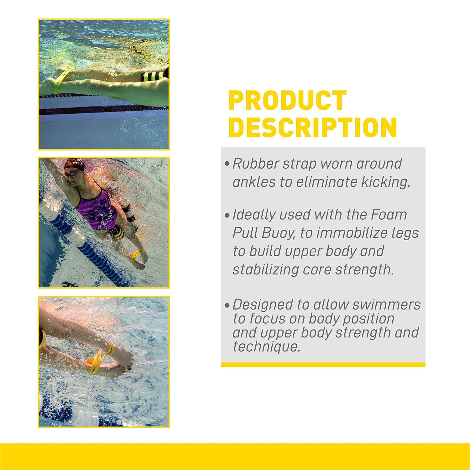 The Pulling Ankle Strap is a rubber strap that is worn around the ankles to eliminate kicking. Ideally used with the Ranges or standard pull buoy, the Pulling Ankle Strap shifts the focus so that the swimmer can build upper body strength. The Pulling Ankle Strap comes one universal size that fits all ankles.