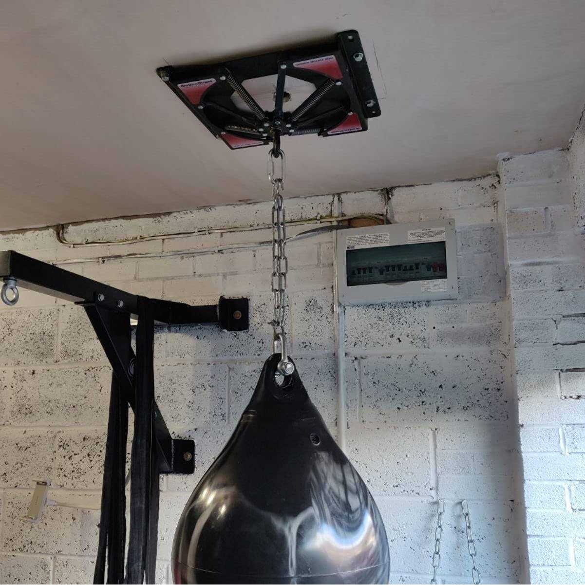 The Firstlaw Fitness Spider Mount is a great way to hang a heavy punching bag. For the most noise and energy dampening ability, our engineering team suggests only using a punching bag hanger that mounts to at least 2 floor joists. This will help distribute the energy twice as well as attaching to a single joist. The Spider Mount is the only heavy bag hanger that allows the bag to move in every direction, not just up and down. This full 360 degree spherical motion provides superior energy dampening. The Spider Mount is engineered to last. If you are not 100% satisfied with this product return it for a full refund, no questions asked.