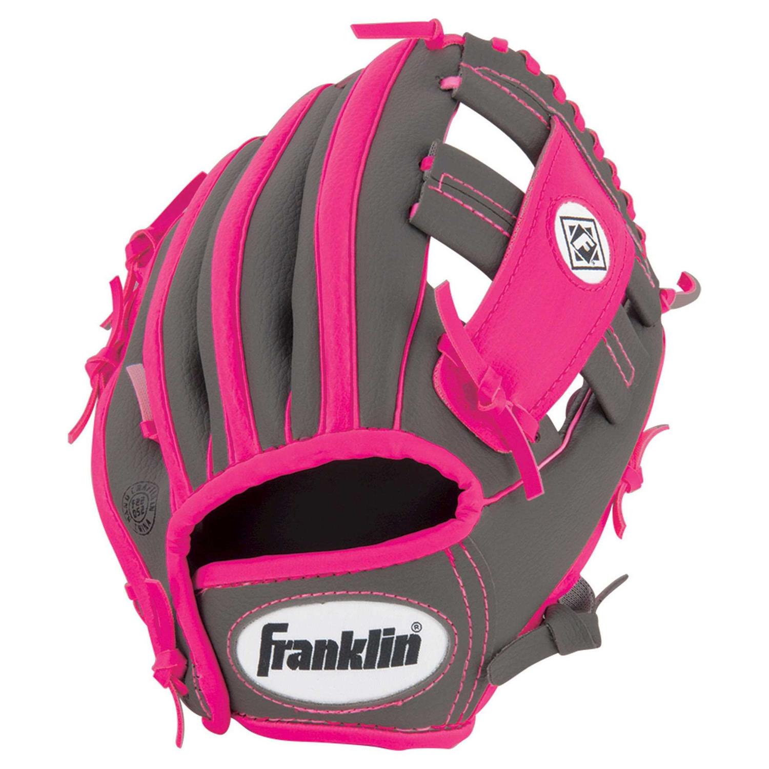 Franklin Sports RTP Teeball Performance Gloves & Ball Combo, Graphite/Pink, 9.5″, Left Hand Throw