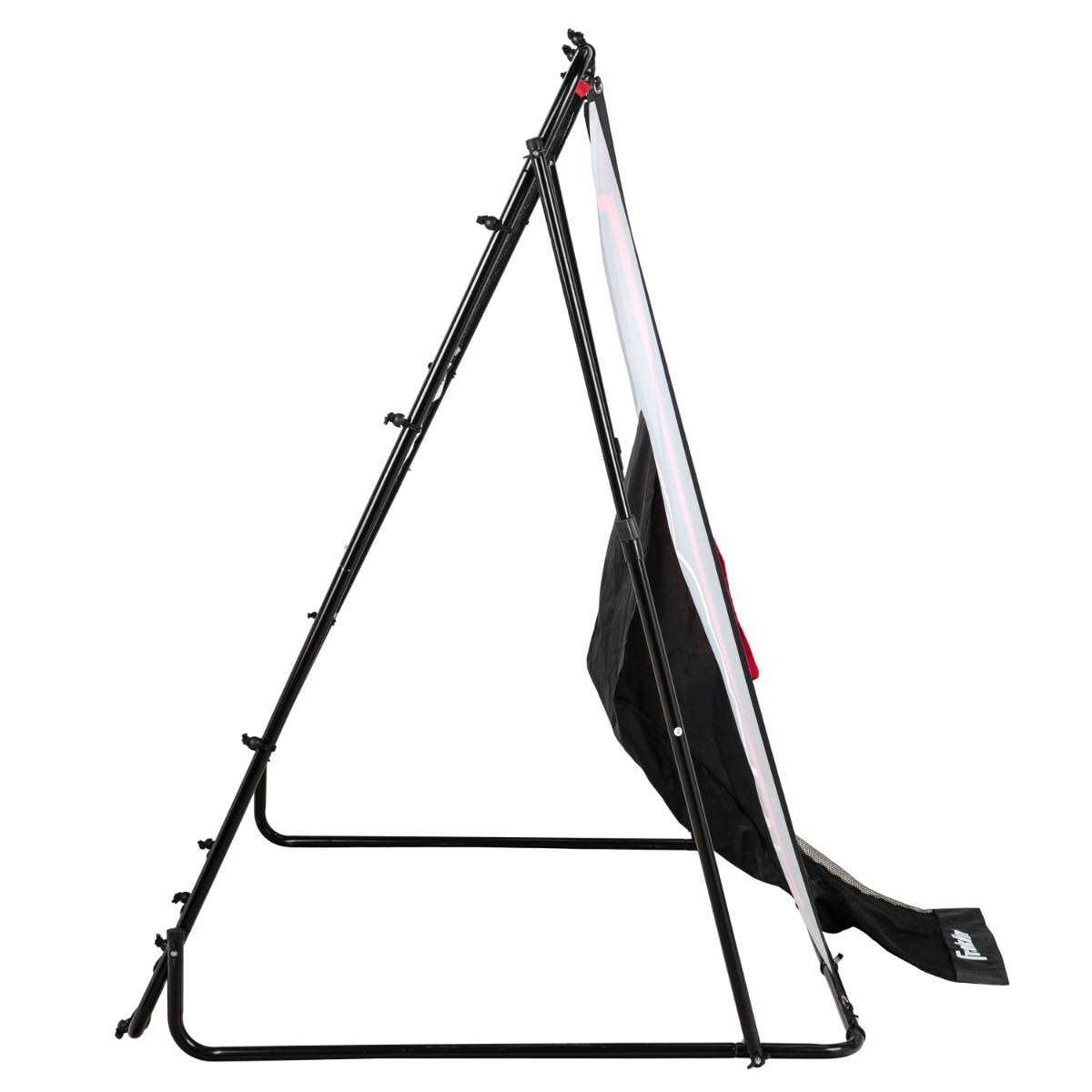 The Franklin Sports 6′ X 12′ Tournament Rebounder is the Ultimate Practice Tool for Solo and Team Practice The Franklin Sports 5695 6′ X 12′ Tournament Rebounder features a double-sided design to enable multiple players to train simultaneously and shoot from longer distances. This rebounder also employs heavy-duty rust-resistant steel tubing for added strength and durability. Precision-fit locking pins and rust-resistant ground stakes keep the frame securely in place. All-weather target net with bungee cord attachment ensure year-round use. The folding base makes storage easy.