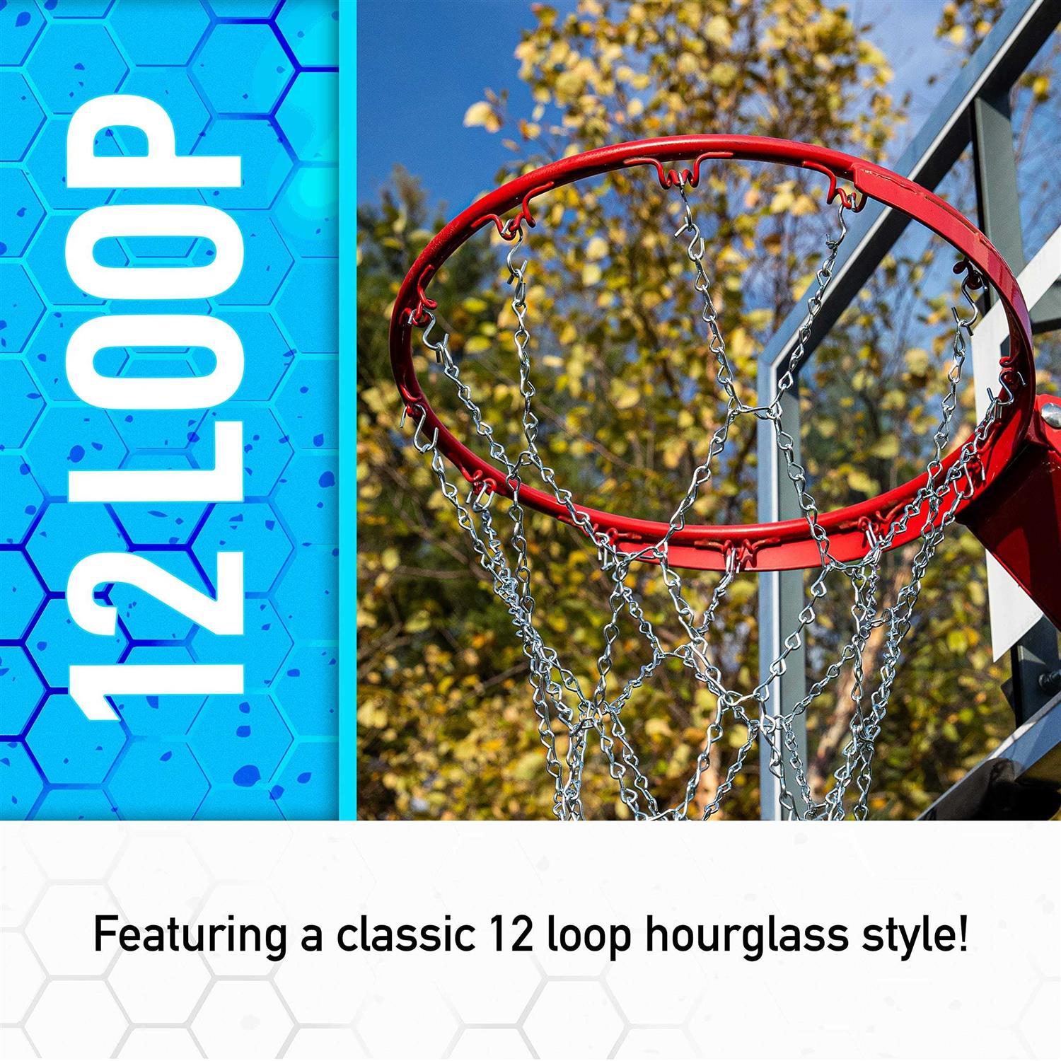 Replace a worn or broken net with the Franklin Sports Metal Chain Basketball Net. Durable enough to withstand the rigors of frequent play, it’s made of heavy-duty, non-corrosive metal. The sports equipment measures 21″ and features a 12 loop hourglass style to fit all standard rims on backboards. You can use it for high school or college schoolyards, playgrounds, recreation centers and home use. It’s available in a one-count package and is easy to install.