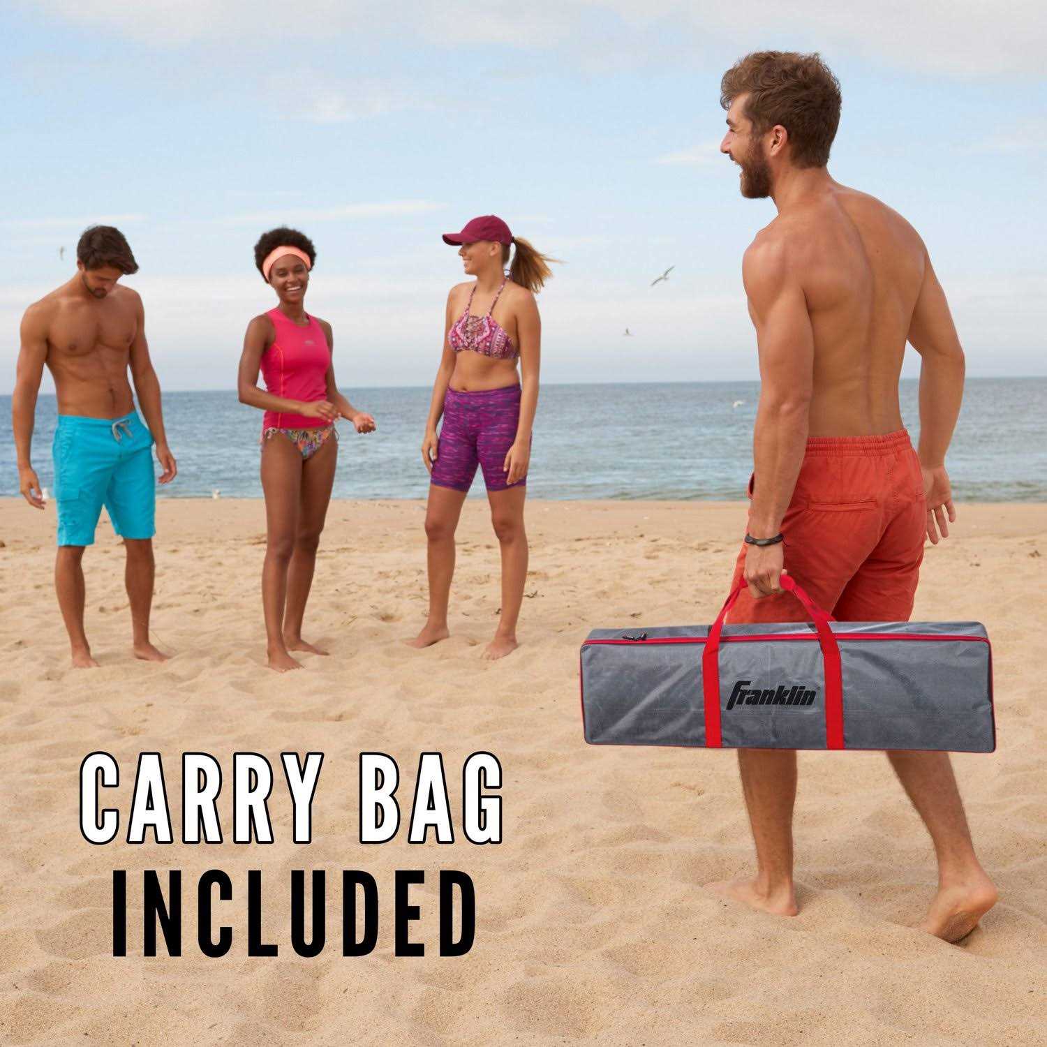 FUN FOR EVERYONE! This go-to complete volleyball set is a classic sport that can be enjoyed by all ages. This volleyball set includes all that you need for a day outside! Includes Deluxe Carry Bag! EASY TO ASSEMBLE POLE SYSTEM includes a 1.5in diameter STEEL pole, 7’11 5/8in high and net that measures 30′ x 2′ ACCESSORIES are all included: (1) official size volleyball, (6) steel stakes, ropes, line boundary kit and (1) inflating pump with needle DURABLE STEEL pole construction make this set sturdy and ready for a full day of competition. When you are done for the day, the set easily breaks down into the deluxe carry bag for transport and storage. PREMIUM STEEL stakes, strong guy wires, and heavy duty net materials ensure a long lasting quality set The Franklin Sports Elite Volleyball set is a classic outdoor game that will bring hours of fun for all ages. The set includes all you need for a day of fun: (1) steel volleyball pole set and net, (1) volleyball and pump and (6) steel ground stakes and ropes and boundary kit. The Volleyball set is easily transportable to your next picnic, BBQ or party and is sure to be a hit. Volleyball is a timeless classic yard game that can be enjoyed by all ages…bring this set to your next gathering today!