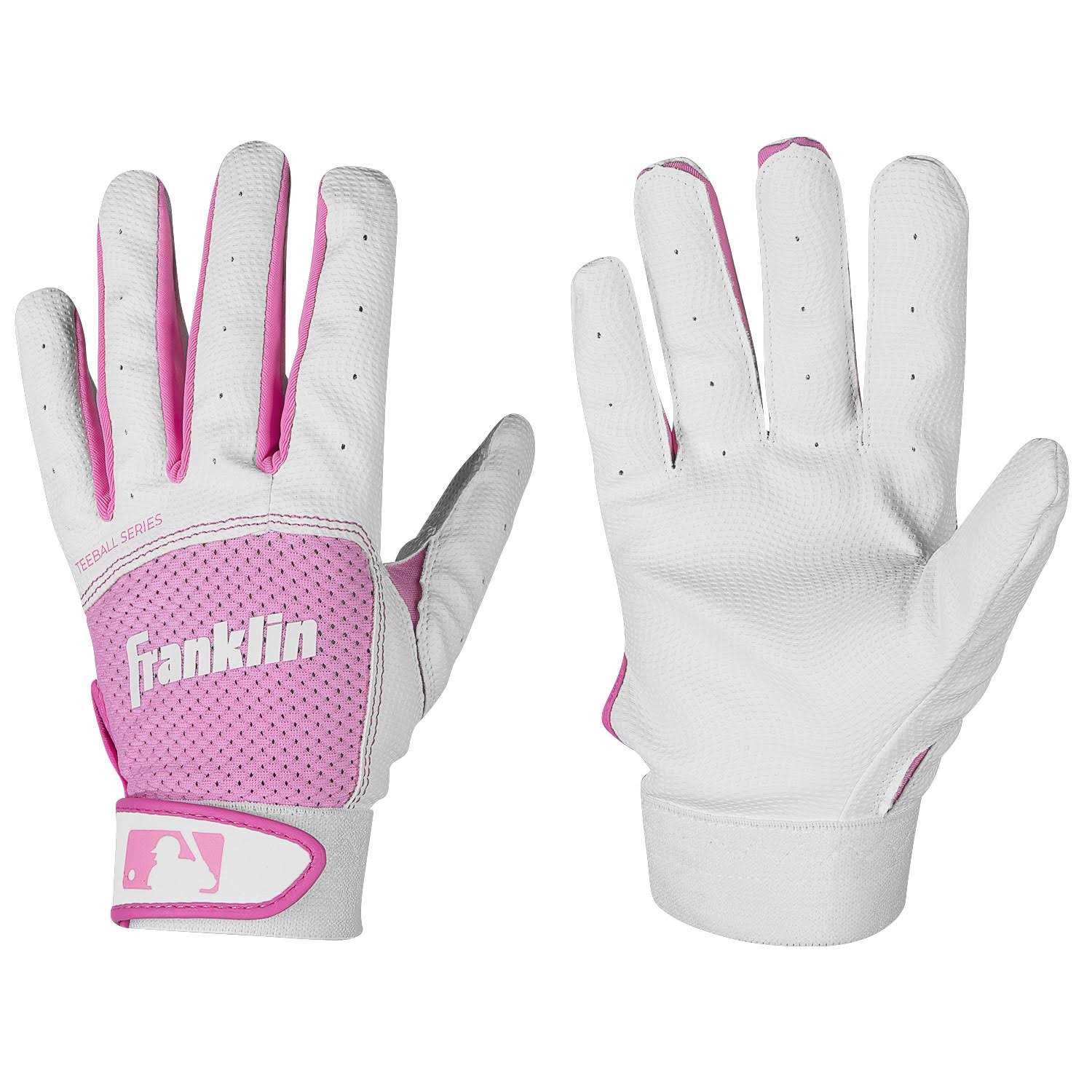Franklin Sports Teeball Flex Series Batting Gloves – White/Pink – Youth X-Small