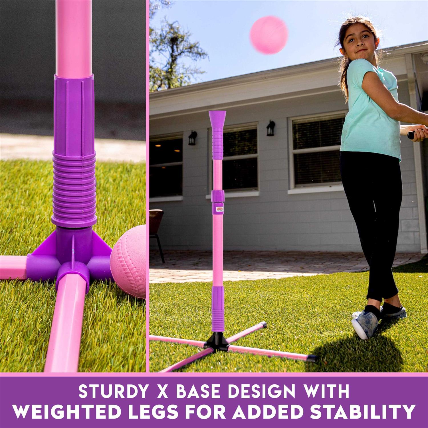 • STABLE DESIGN: The sturdy “X” design base helps provide additional batting tee stability to prevent it from falling over even on big swings