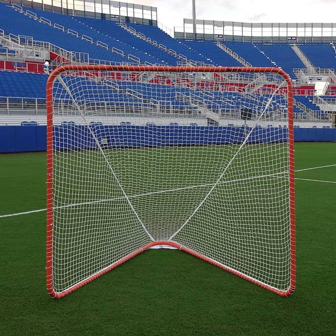 Practice like you play with this official size 6’x6′ lacrosse goal. This sturdy, high quality goal is made of 100% 1. 5′′ diameter steel frame, and contains 20% higher steel content than competitors’ goals.