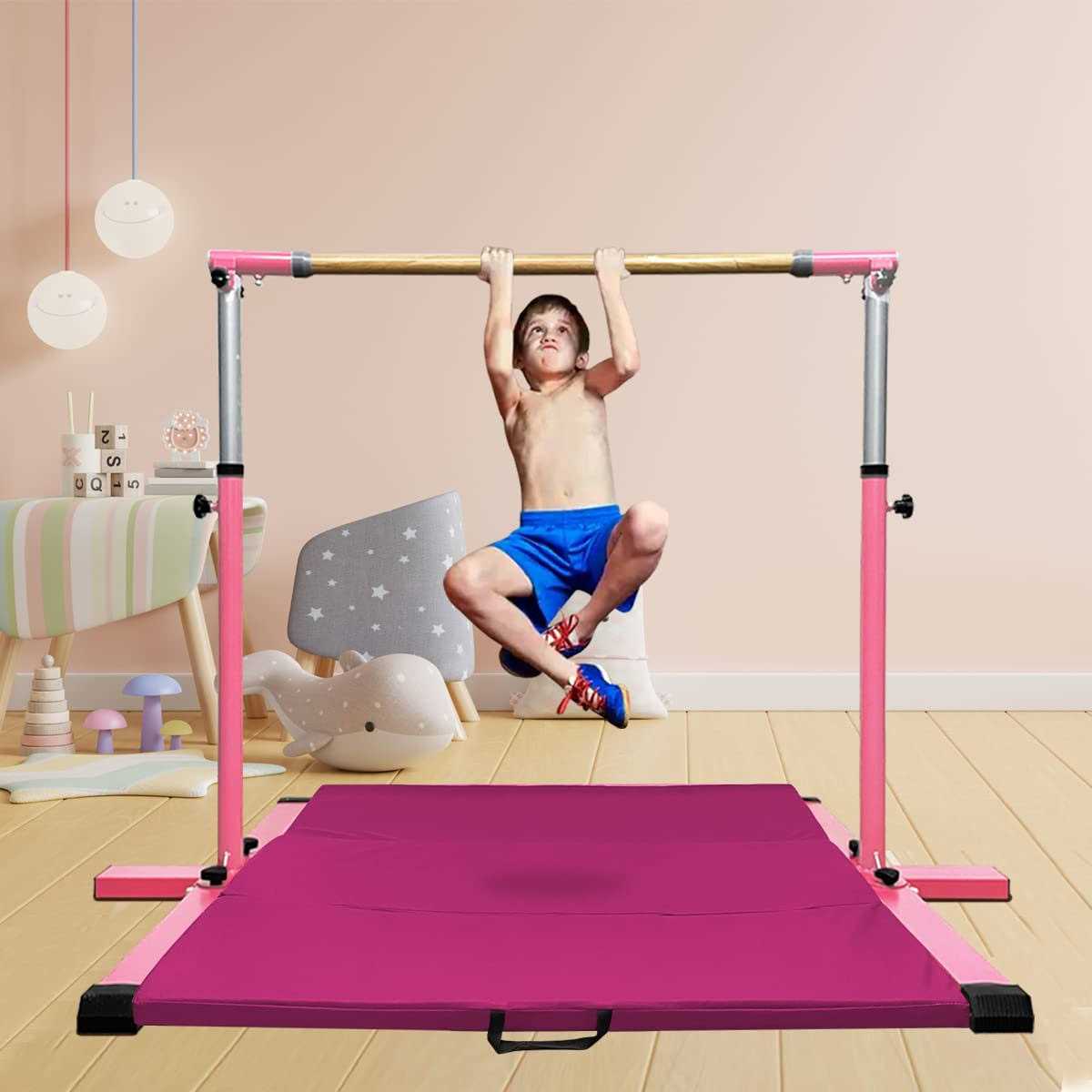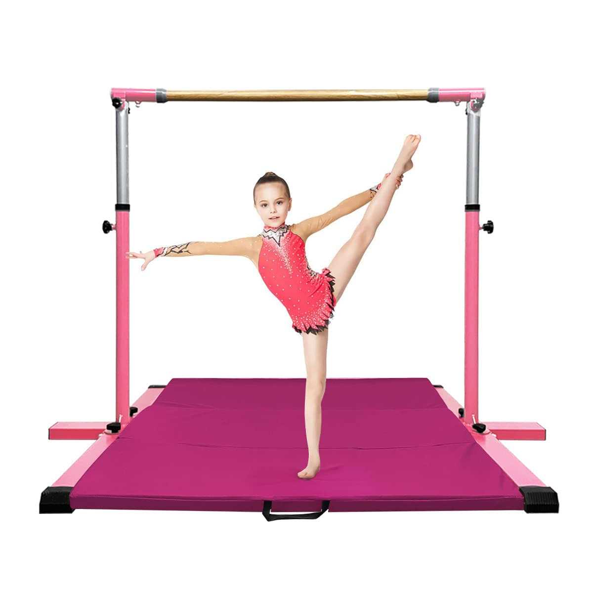GLANT Gymnastic Kip Bar,Horizontal Bar for Kids Girls Junior,3′ to 5′ Adjustable Height,Home Gym Equipment,Ideal for Indoor and Home Training,1-4