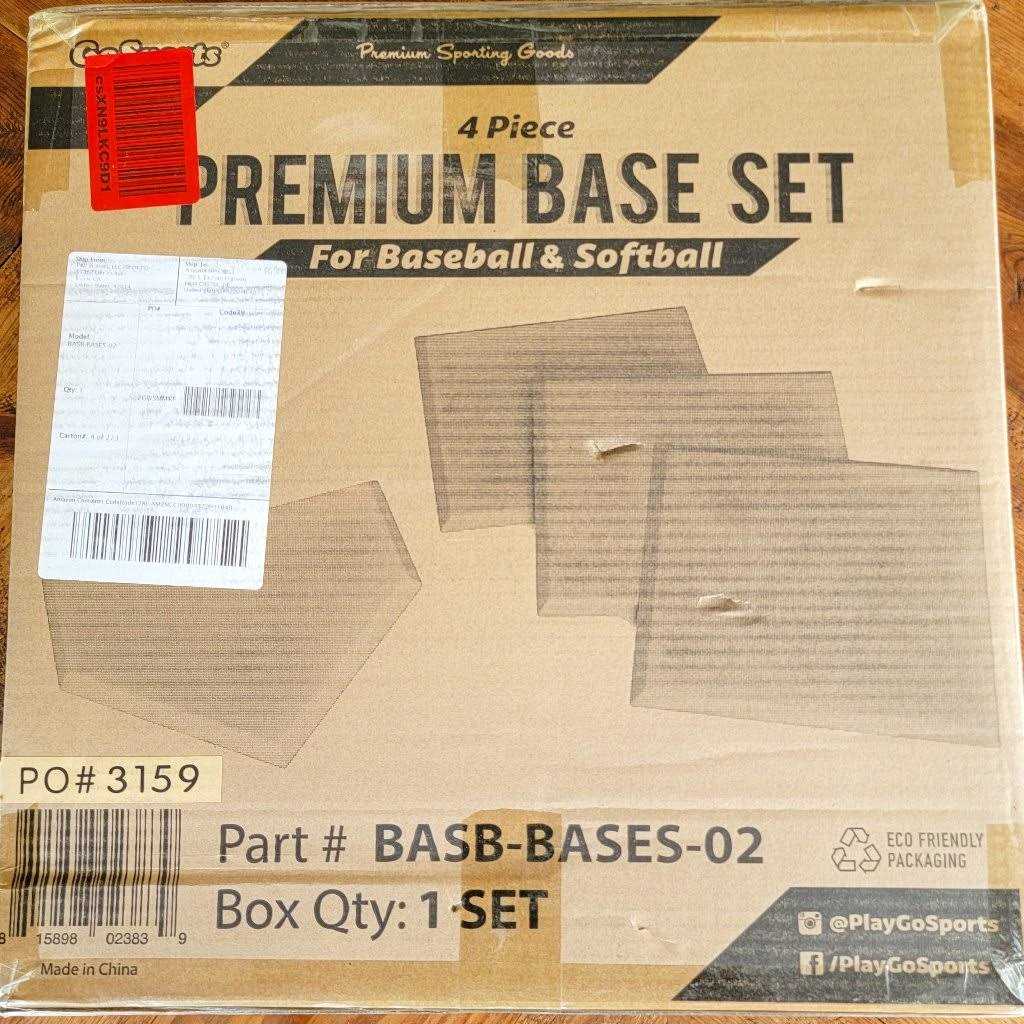 The GoSports Baseball & Softball 4 Piece Premium Base Set is an essential for any field and athletes of all skill levels. The set includes 1 home plate, 3 bases, and 1 pitching rubber for a complete setup. Whether youre practicing with a coach or team, playing recreationally, or using them for kickball, this base set is sure to become a staple on the field. The bases are simply thrown down for setup and feature an ultra thick rubber construction to withstand athletic use. Once youre ready to pack up, the bases can be thrown in the car, tossed into a gear bag, or stored in a locker. The combination of durability, portability, and price makes this a great set for coaches, camps, league, schools and more! Now play ball with the GoSports Baseball & Softball bases!