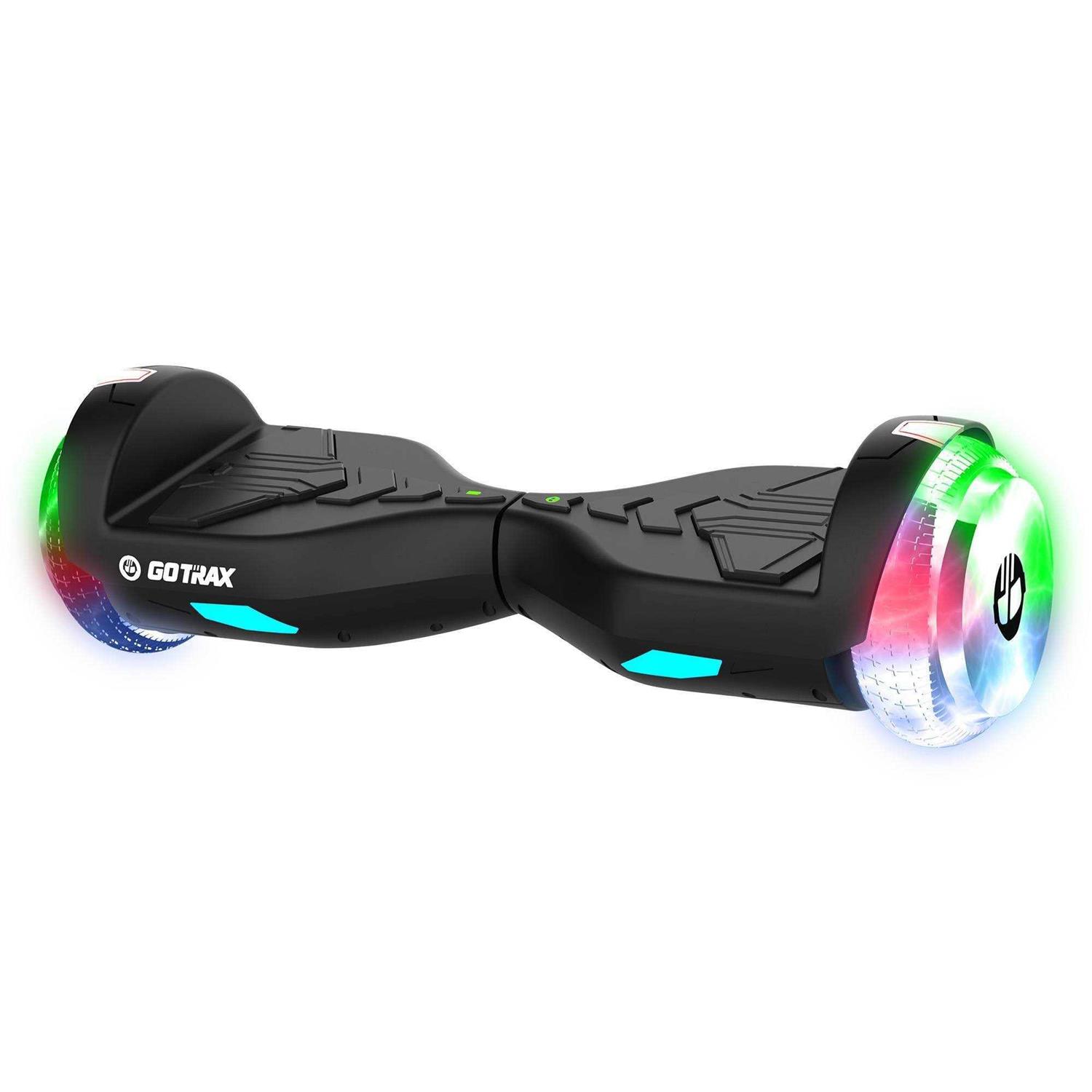 Introducing the Gotrax Luminous Hoverboard – a fun and colorful ride for all ages! With powerful dual motors, it reaches speeds up to 6.2mph and can carry riders up to 176 lbs. The battery provides up to 4.3 miles of continuous riding on a single charge. What makes it truly unique is the mesmerizing light show with translucent tires that reflect a rainbow of colors and a built-in music speaker for an immersive riding experience. Safety is a priority with UL2272 certification, bright front LED lights, and illuminated wheels for night riding. Easy to learn and control, it’s perfect for kids and adults. Get ready for an unforgettable adventure! Tested and Certified to UL2272 Safety Standard.