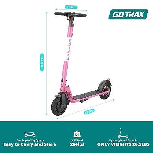 Portable and Lightweight: The Gotrax XR Ultra commuting scooter is very lightweight, only weights 26.7 pounds, easy to carry; With a one-step folding system, you can easily fold it within 3 seconds, easy to store in the garage, subway and bus etc. 8.5″ Inner Honeycomb (Solid) Tires: The electric scooter is designed with 8.5″ inner hollow solid tires, can provide more cushion than solid filled tires and tends to be lighter weight, making riding more comfort. Inner honeycomb solid tires will not puncture and require no maintenance. 16Mile Long Range Electric Scooter: High capacity LG battery 36V 6.8 AH with a maximum travel range of up to 16 miles under optimum conditions. Our Smart Battery Management System ensures battery safety and extends the battery life. 300W Strong Power E Scooter: The adult electric scooter features a quiet Nominal Power 300W (Max. Power 400W) motor, boasting a top speed of 15.5 MPH and a max load of 264 lbs, making it a perfect commuting scooter. Multifunctional Console: The LED display shows current speed, speed modes, battery life, and headlight. The sport scooter also features a Disc&EABS braking system for safe, responsive braking while at top speed. More safe to ride.