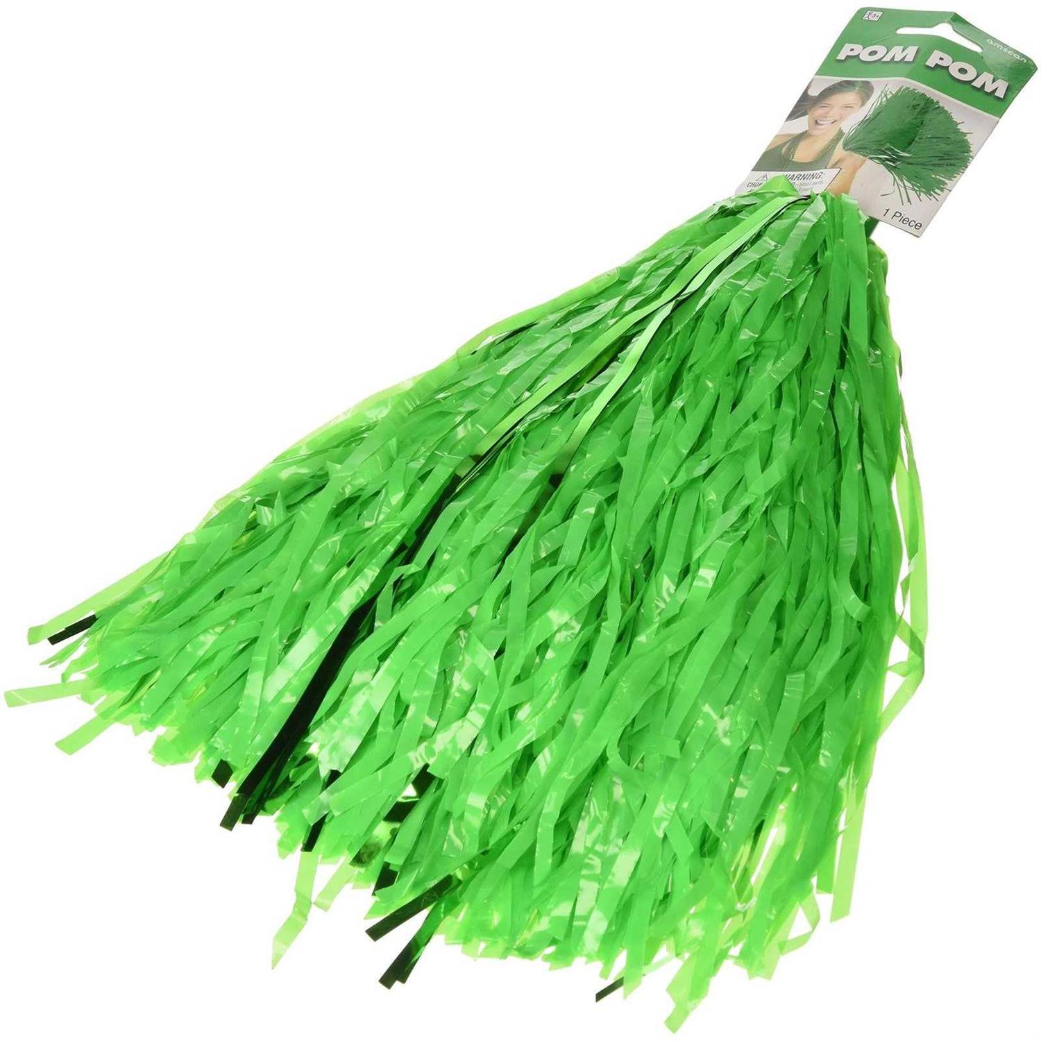 Cheer your team on with our bright green coloured Party Pom Poms! Our Pom Poms feature thing vinyl tassels measuring 12 inches in length and a 3 inch plastic handle making them super easy to hold. Each package includes 1 Pom Pom. Now get ready to cheer your team on from the sideline!