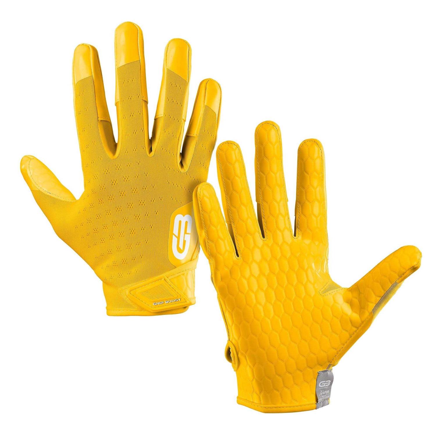 Patented Engineered Textured Palm creates more contact points with the football, resulting in greater grip. Knit back of hand material is soft, stretchy and does not include a single seam. Textured palm creates a natural moisture wicking system. Breathable, 4-way stretch knit allows glove to conform to your hand, for a snug fit. Adjustable closure wrist strap gives custom fit.