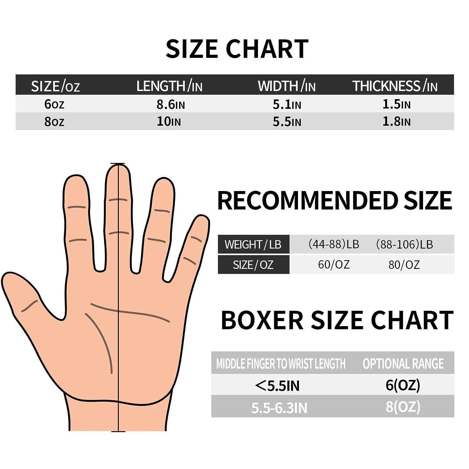 - Matching Your Hand SizeBoxing gloves set for kids,boys, girls, junior, youth, age 6-12, 6 oz weight and age 12-16,8 oz weight.