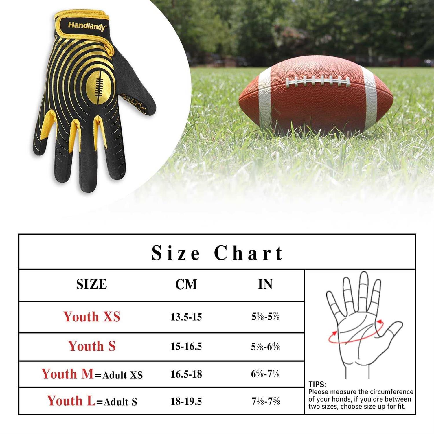 Handlandy Youth Football Gloves, Sticky Wide Receiver Gloves for Kids & Adult