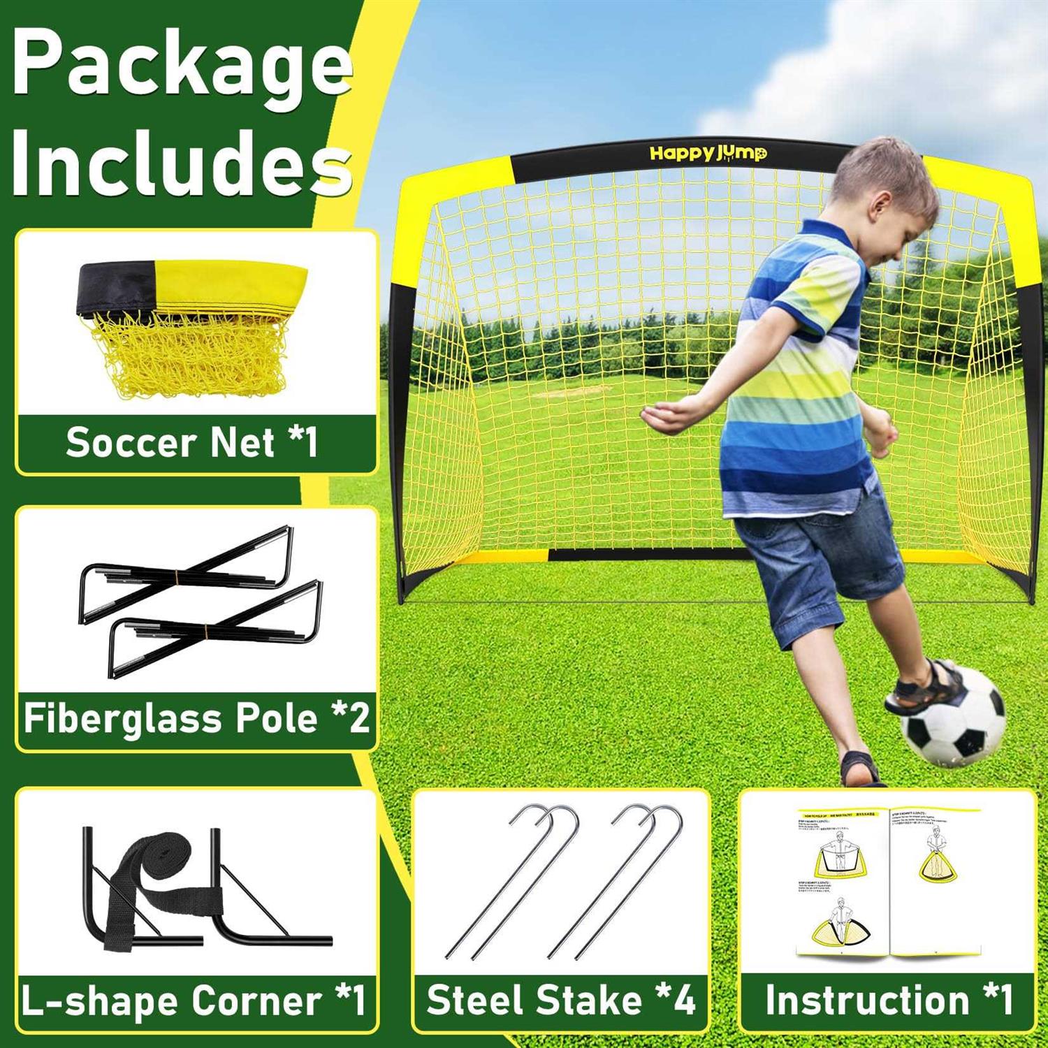 Happy Jump Soccer Goal Pop Up Foldable Soccer Net for Backyard