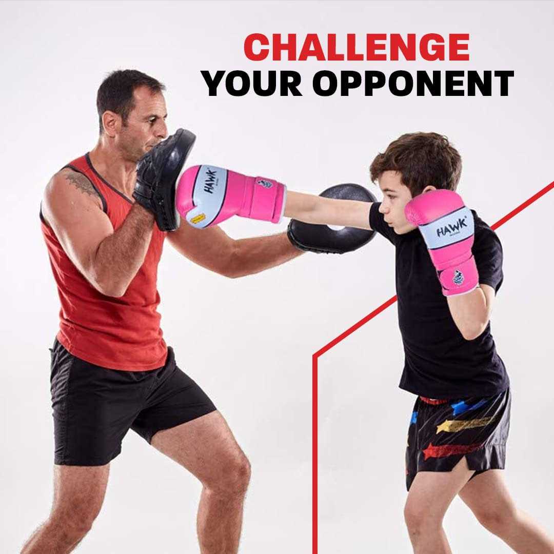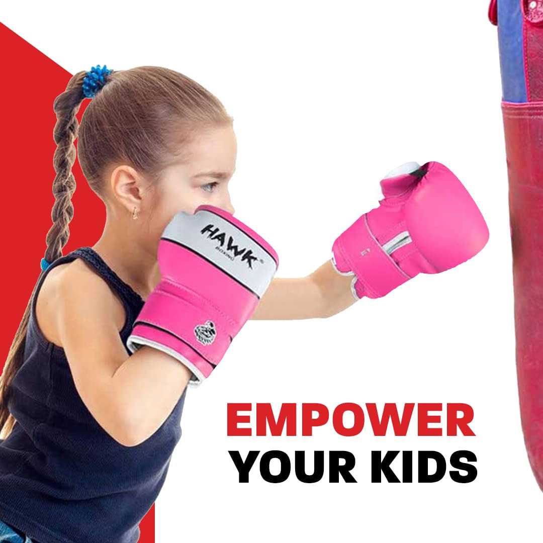 BUILD A HEALTHY TRAINING HOBBY: Get these premium quality boxing gloves for kids to let them train with a punching bag or boxing mitts. #HawkSports to join our growing community of strong people 🙂 BUILD A HEALTHY TRAINING HOBBY: Get these premium quality boxing gloves for kids to let them train with a punching bag or boxing mitts. #HawkSports to join our growing community of strong people 🙂 WRIST & KNUCKLE PROTECTION: Extra-thick Supremo-Shock Layer based padding on knuckles of these PU leather boxing gloves with separate padded block over wrist-joint for ultimate wrist safety. ANTI-PERSPIRATION HOLES: These hawk kids boxing training gloves have a breathable pinhole palm that offers increased hygiene efficiency. Top quality bag gloves for kids to reduce offensive odors, moisture through children hands. ALL PURPOSE: These youth boxing gloves for boys and girls are ideal for punching mitts, sparring , punching bags, mma training , muay thai and for kickboxing. Hook & Loop Velcro wrist strap for easy usage of boxing equipment. If you are not completely satisfied with any aspect of the child heavy bag gloves then just message us for a free replacement or a full refund. ULTIMATE DISCOUNTED DEAL.
