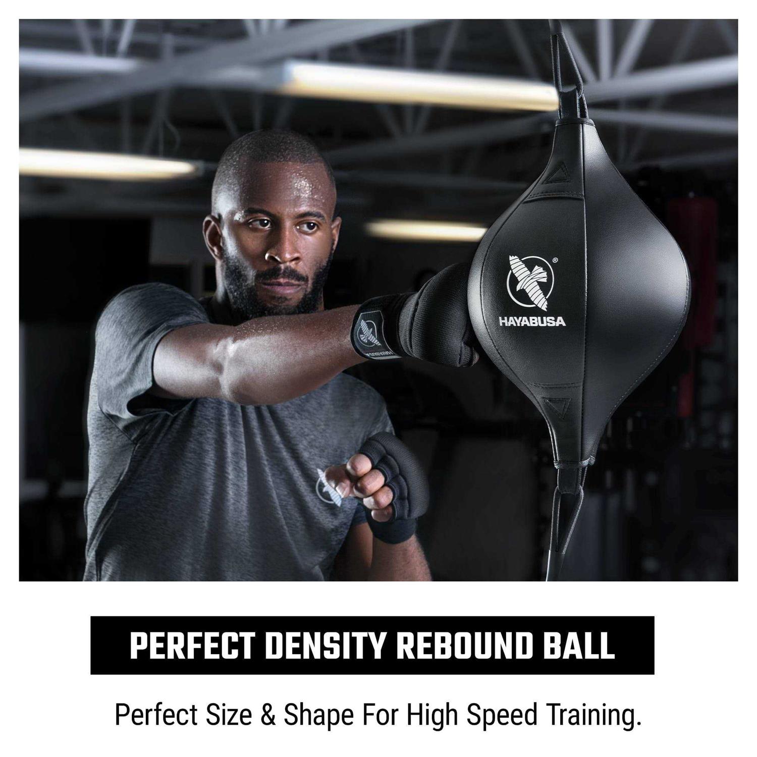 Double-End Bags by Hayabusa. Details:The Hayabusa Double End Bag is the perfect tool for developing core boxing skills, from timing and accuracy to speed and endurance. Take your training to another level with shock cords that rebound rapidly to challenge your hand-eye coordination and keep your reflexes sharp. Equipped with a perfect density ball and heavy duty braided cords to make setup and take down quick and easy in any training space. Features: Perfect density rebound ball delivers excellent feedback with a satisfying pop on impact, Heavy duty braided nylon shock cord rebounds ultra quick for high speed training, Ultra tough exterior and non.