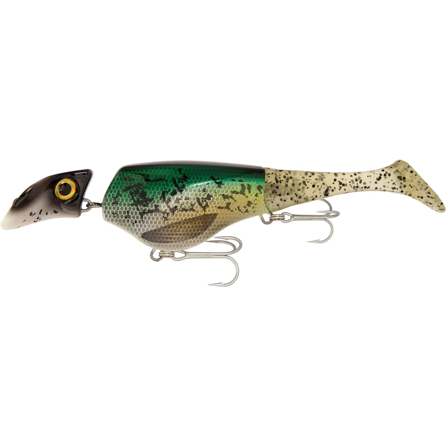 Combining erratic and evasive movement with the irresistible characteristics of the fixed, replaceable paddle tail to give you a swimming action that triggers even the most lethargic fish to strike. The Headbanger Shad 22cm / 9″ works well with just a simple straight retrieve, but excels when used with pauses and twitches. Available in three different buoyancies for different depths and styles of fishing, it is typically used to target northern pike, musky, big zander and lake trout. The lure has a wire-through-body construction and is equipped with rattle balls of different sizes for a fuller sound. The lure is lead-free and the weights inside are made of stainless steel. Headbanger Shad is equipped with premium VMC hooks, #2/0 in the front, #1 in the rear. Trolls up to 2. 2 knots (2. 5 mph / 4 km/h). The tail is easily replaced by turning it counterclockwise to release it from its corkscrew anchor. The lure has two smaller pegs that hold the tail in place and prevents it from twisting out of position when being used.