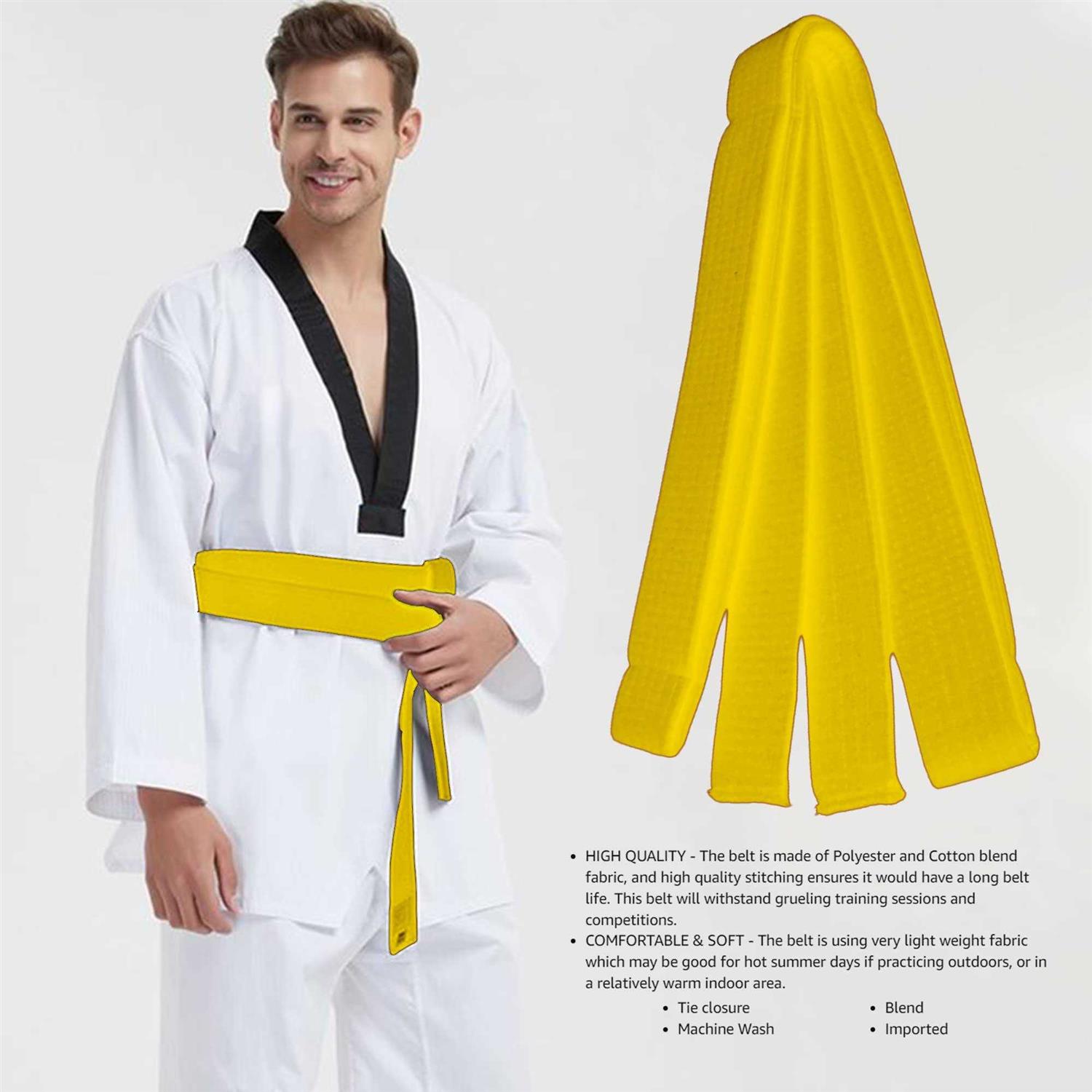 Belt Displays by Hithop. Details:Specifications: Package Include: Long Soft Belt for Martial Arts Karate Taekwondo Judo Material: Cotton and Terylene Size: Width: 4cm / 1.57 inch Length: 8.6ft / 260 cm Color: Black, Red, Yellow, Blue, White and Green as picture shown. Features: The Soft Belt for Martial Arts are crafted with tradition, built for durability and long-lasting performance. This belt will withstand grueling training sessions and competitions.