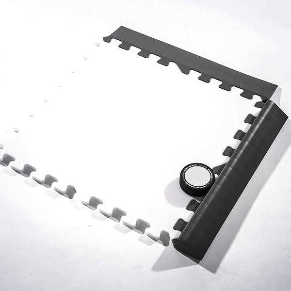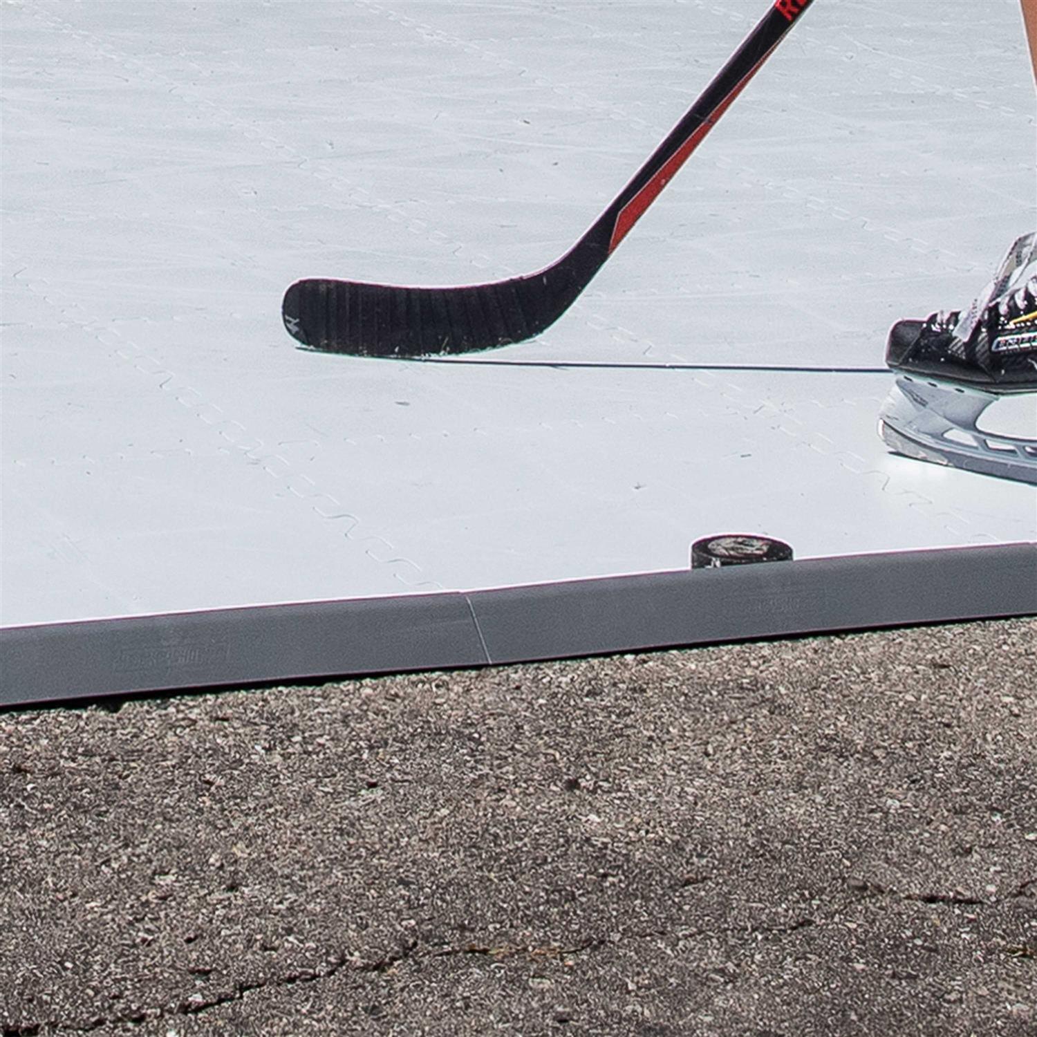 HockeyShot Puck Stopper Edging is the best thing to ever happen to the All-Star Dryland Flooring Tiles ; Synthetic Ice Revolution Tiles! There is nothing worse than being in the middle of a practice session and having to pause because the puck slides off your stick and out of bounds. This multipurpose edging doesn’t just keep the game clock running but can also be used as a wall to push-off for skate stride drills.