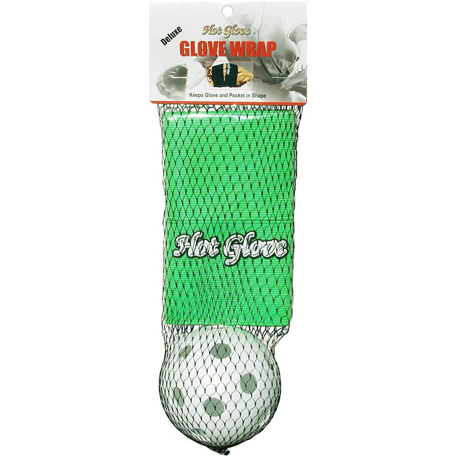 Hot Glove Deluxe Glove Wrap Wrap your glove to maintain the pocket and keep the glove shape all year-around. Stretches to fit any size glove. A large Velcro closure and stretchable polyester allows it to conform to large or small gloves. The highly stretchable material enables you to apply the perfect pressure to your glove. Features a slit in the middle so you can form the perfect pocket Comes with a regulation size plastic softball to wrap your glove around Product Description:Deluxe Glove Wrap is the best way to maintain a glove pocket and preserve the glove shape. Comes with a plastic softball to be placed in the glove pocket when the Glove Wrap is placed around the glove.