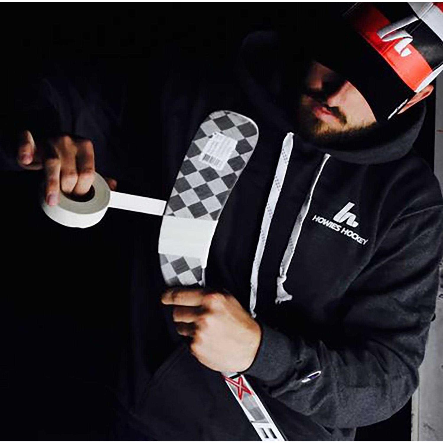 Howies Premium Wrapped Cloth Hockey Tape It’s exactly thirty seven minutes until puck drop, but who’s counting? You are, because you know how important it is to be prepared. And that’s what you’ll be with Howies cloth hockey tape. Made from tightly woven poly-cotton cloth and an aggressive natural rubber adhesive, your tape job will hold up to the rigors of the game.