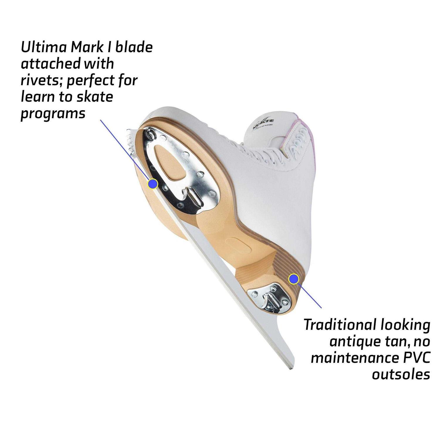 New SoftSkate 380 by Jackson combines the luxury and warmth of traditional white figure skate with Superior comfort from first try-on! Medium recreational support for beginners and those commencing lessons. Reinforced vinyl upper with strength and durability. Padded covered tongue and thick soft padded rolled collar gives support, warmth and comfort. Traditional looking Antique tan colors, no maintenance PVC outsoles with Ultima Mark I stainless steel blade excellent for beginners. New SoftSkate 380 by Jackson combines the luxury and warmth of traditional white figure skate with Superior comfort from first try-on! Medium recreational support for beginners and those commencing lessons. Reinforced vinyl upper with strength and durability. Padded covered tongue and thick soft padded rolled collar gives support, warmth and comfort. Traditional looking Antique tan colors, no maintenance PVC outsoles with Ultima Mark I stainless steel blade excellent for beginners.