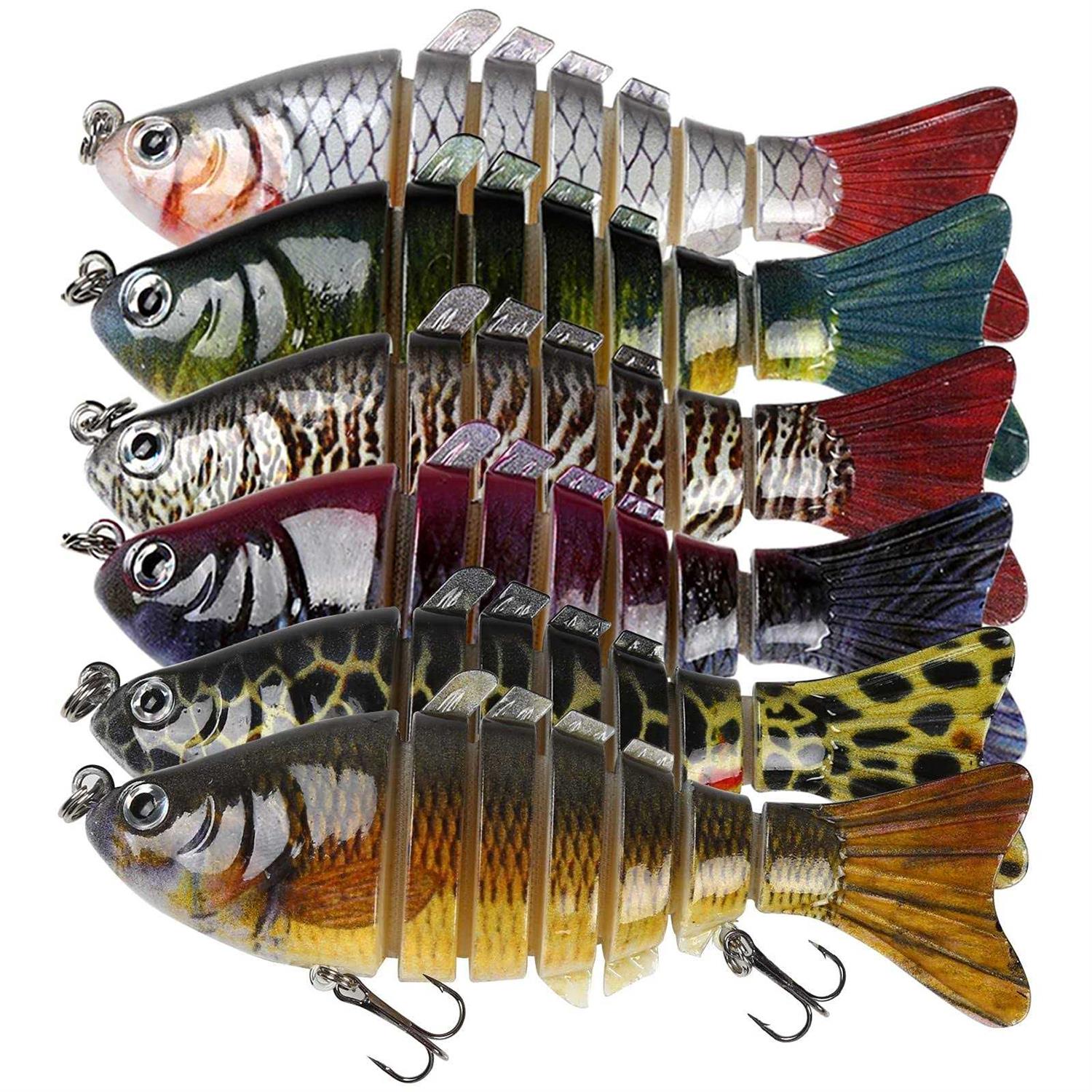 MULTI JOINTED FISHING LURE: /b Constructed with a tough ABS plastic ang 7 segment multi-jointed body, jointed fishing lures can sink slowly and move flexible in water. In addition, life-like swimming actions make it attracting more catches and provoking predator fish to strike. WIDELY FISHING SPECIES: /b This bass fishing lures can be widely used to catch bass, walleye, yellow perch, roach, trout, muskie, snook, pike, salmon etc. This swimbaits is suitable for both brackish and fresh water and works well in all water layers, and can be used for ocean boat fishing, ocean rock fishing, ocean beach fishing. LIFELIKE FISHING LURE: /b Equipped with 3D holographic eyes and coated with realistic fish scales, this fishing lures look so delicate and vivid that they look like a real fish.A perfect fishing lure that can easily fool the target fishs. GRAVITY DEVICE: /b The gravity device inside the bait helps to adjust the center of gravity, can increase the casting distance and make a sound that attracts large predators.Even novice fishermen can easily control the lure and get more harvest. br Why Choose Our Fishing Lures? br br Our fishing lures are specifically designed to be as realistic as possible. The fishing popper lures have incredibly realistic 3D eyes, and lifelike colors. br br Five characteristics of the product br br 1:The fishing lure has a center of gravity shifting steel ball inside the body, which can move to the tail when casting to improve casting distance. Stable and smooth posture in the air, not easy to spin and easy to cast. br br 2:Can reflect external light from all angles and has a light attraction effect, suitable for different water conditions. br br 3:There are many small steel balls in the body, which will make a loud sound when dragging and strongly attract the attention of fish. br br 4:Made of ABS plastic material, strong and sturdy, resistant to falls and knocks, the steel balls used inside are tested by precision instruments to ensure the swimming position of each lure. br br It should be noted that intense pumping of the bait can make the swim play to a good effect, even if the fish hiding in 3-3.5 meters of dense water or rocky roots will be enticed and bite. br br If you are a fishing enthusiast, our Lures Fishing is very suitable for your choice.