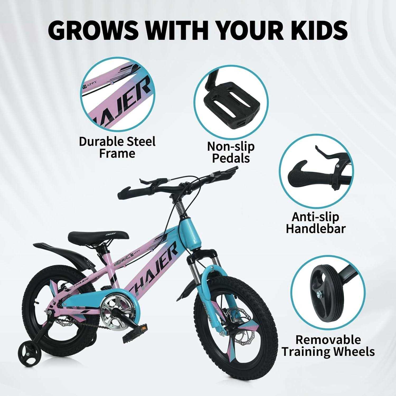 This bike can help children quickly master riding skills under safe conditions. The 16 inch wheels are not only non-slip but also adaptable to different roads. Two auxiliary wheels can improve the overall stability of the bicycle. The adjustable handlebars seat grows with your child, and quick release seat for easy height adjustment, you will get a custom seat height. The enclosed chain guard prevents ankles from catching. All in all, Wanan Kids Bike is great for kids, exercising is the nature of children, and cycling can promote their sports. Perfect for the kid’s gift, children will love this bike very much.