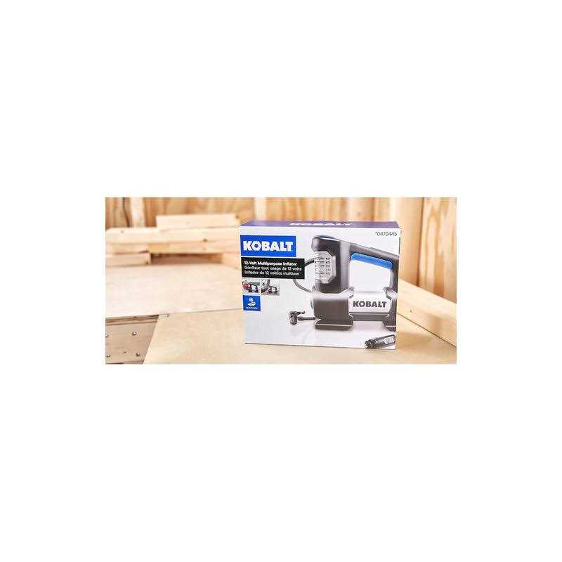 Kobalt 12-volt air inflator includes Presta valve adaptor sports needle raft nozzle and carrying bag. Plugs into the 12-volt power outlet in your vehicle for convenience. Analog pressure gauge allows for accurate PSI readings so you know when the item has reached its desired fill. Built-in emergency or work light provides greater visibility while inflating various items. Carrying case allows for easy storage and transport.