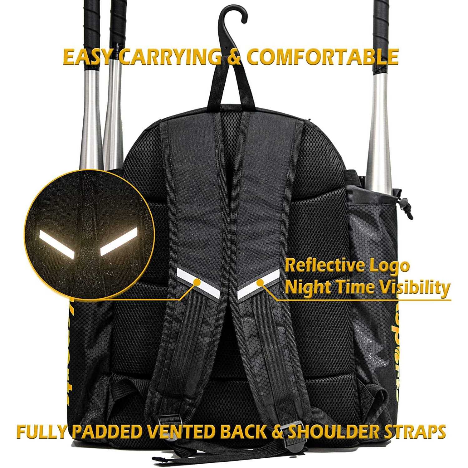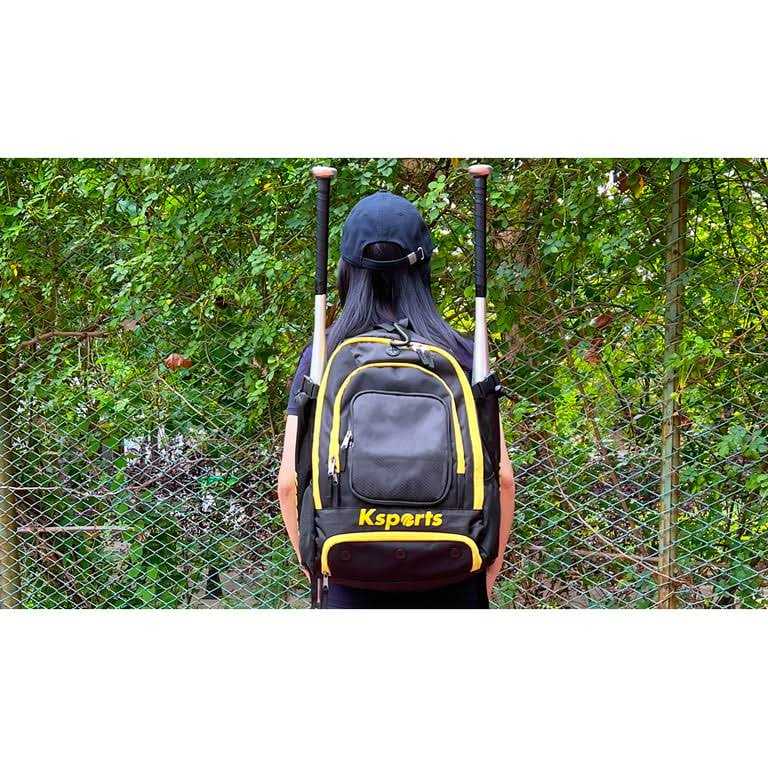 Ksports Baseball Bag Black with Yellow Zippers – Backpack for Baseball, T-Ball & Softball Equipment & Gear for Youth and Adults