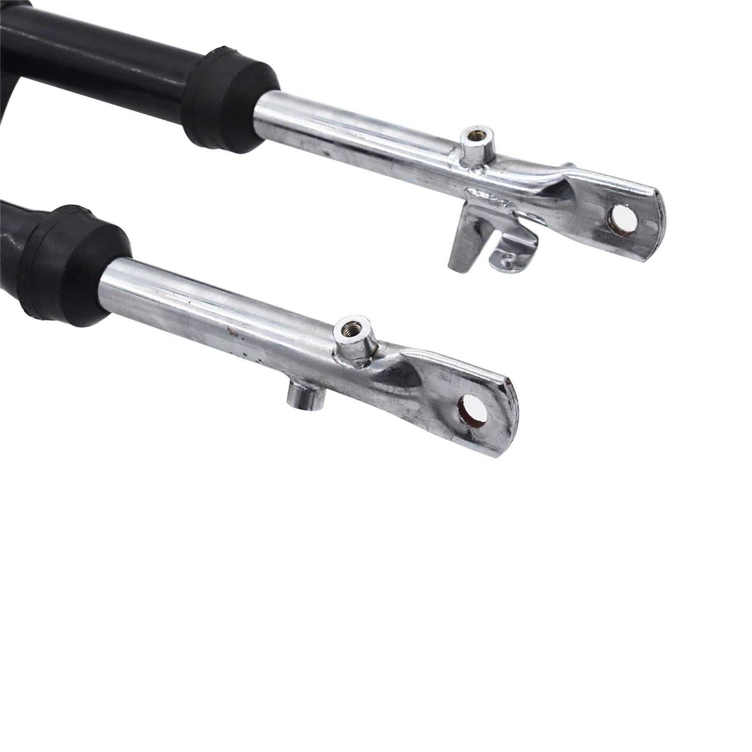 Bolts and nut are included Stronger legs, stiffer springs and a thicker tube Slightly stiffer springs compared to stock Direct replacement, no modifications These front forks are just like the stock but they have stronger legs, stiffer springs, and a thicker Tube. This fork kit is a stock replacement for the 2000-2014 CRF/XR50. It’s for drum brake only. Bolts and Nut are included br Please check the picture to make sure the item. br Fits for br 2004-2014 CRF50F br 2000-2004 XR50R